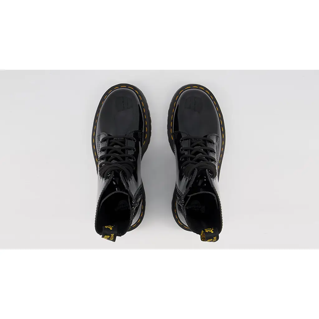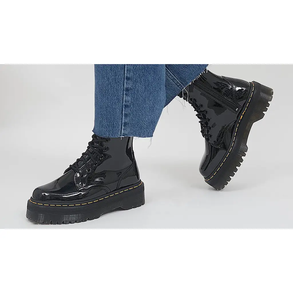 Get the Dr. Martens Jadon 8 Eye Boots Patent Black on The Sole Supplier app and never miss any of the newest drops from Dr. Martens.