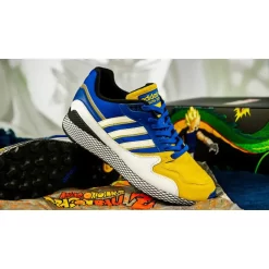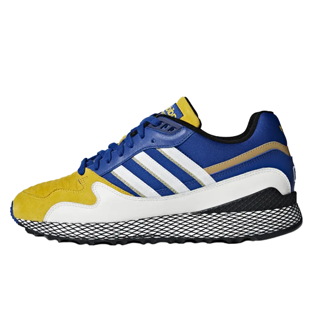 Inspired by the prince of the fallen Saiyan race, the Dragon Ball Z x adidas Ultra Tech Vegeta is painted in Vegeta’s signate blue, white, and yellow colour scheme. Heavily inspired by the ’90s Oregon Ultra Tech, a runner famous for its carefully calibrated dimensions and distinctive web-wrapped midsole, mesh, nubuck, and suede bring a mix of textures to the upper, whilst a cushioned midsole and a soft fabric lining provide a plush step in feel, offering DBZ fans additional comfort with every step.