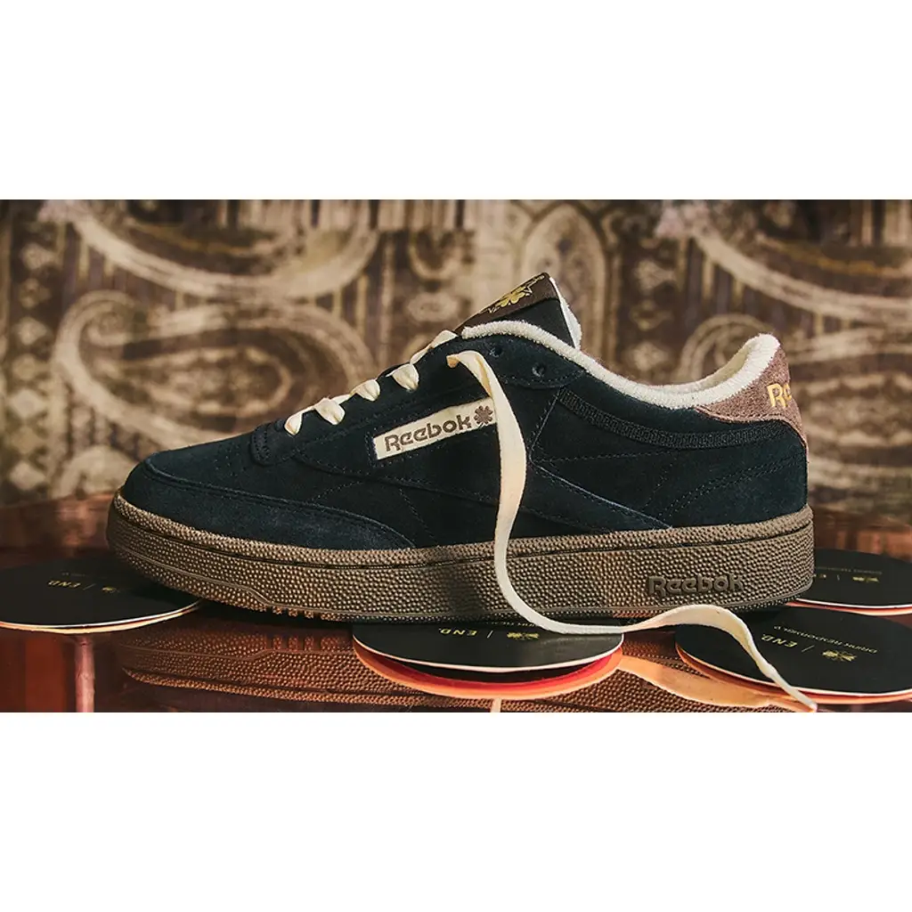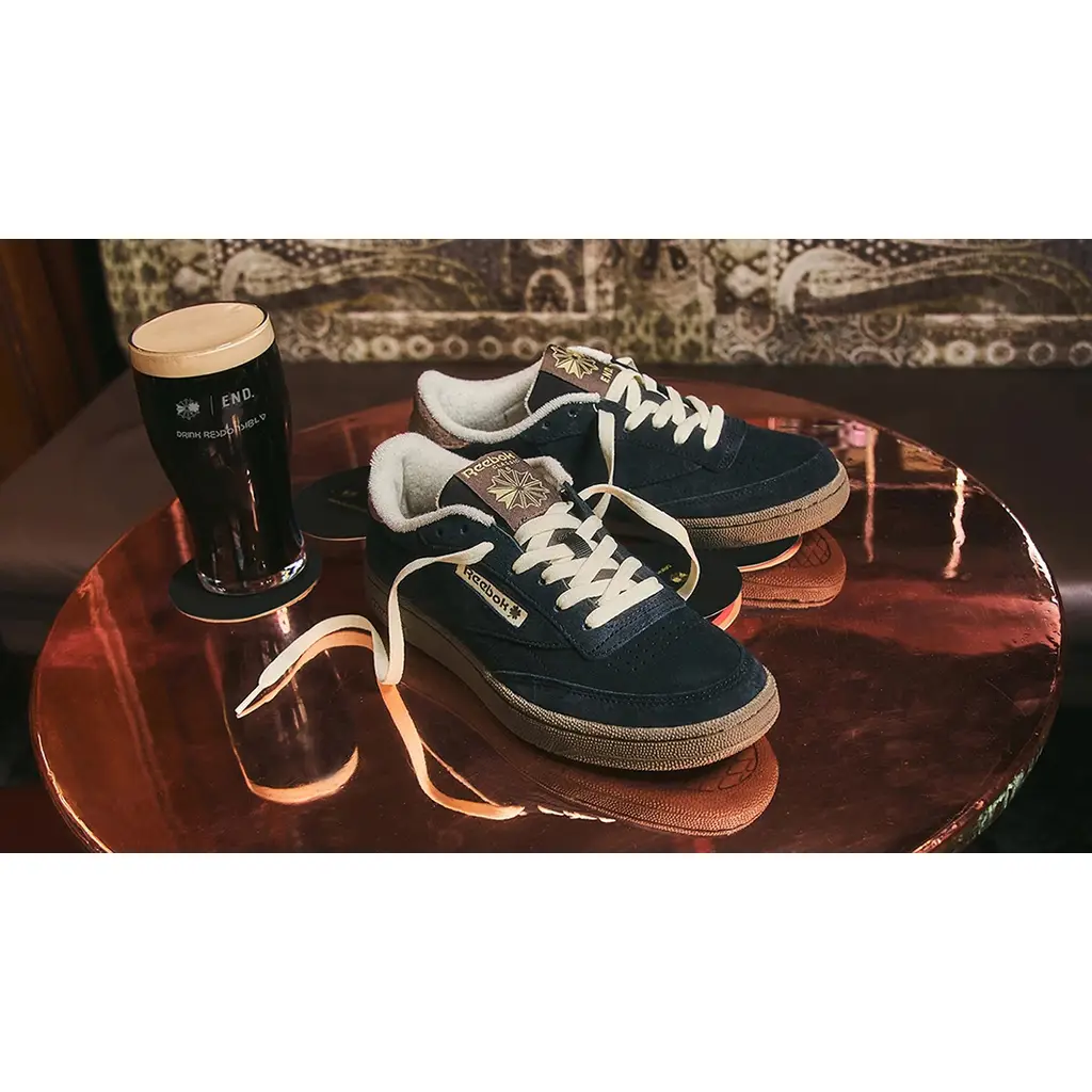 After its “Reported Sightings” pack in 2022, END is on a storytelling streak with its partner Reebok. Releasing in time for St. Patrick’s day, END turns to the trusty Stout for some much-needed inspiration. A Black suede on the upper represents the heavy-bodied beer, complementing the simple panelling of the Club C. Creamy laces match the cushioned terry lining found around the ankle collar, both nodding to the foamy head that always sits gracefully atop the body. Underfoot, you’ll find an accompanying brown sole that represents the coffee-like notes that remain present among the drink’s rich flavours. The END moniker can be found under the Reebok insignia on the tongue label, as well as the insoles that read “Drink Responsibly”, the campaign’s slogan.