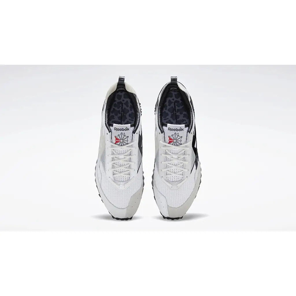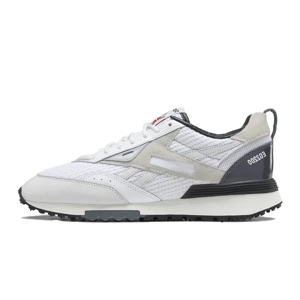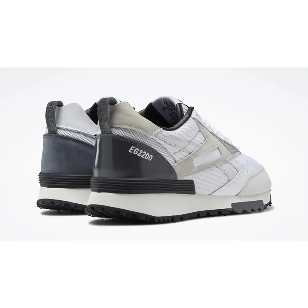 The Engineered Garments x Reebok LX2200 White Black shows how a shoe can have intricate design and look sleek at the same time. It has a mixed-material upper that consists of nylon upper, grey suede overlays and colourless smooth leather. Meanwhile, the patent leather heel overlay, synthetic heel accent, heel tab and inner lining are all in tonal black. Elsewhere, a touch of bright red pops against the white tongue tag. The asymmetrical overlays of the upper contrast with the streamlined look of the white EVA midsole and the grippy black outsole with flex grooves.