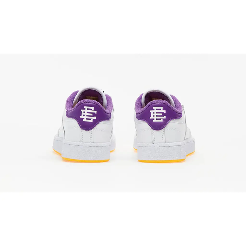 The Eric Emanuel x Reebok Club C 85 White Purple Yellow marks another collaboration between the iconic trainer brand and the New York-based designer. After teaming up with Reebok and Allen Iverson for the Reebok Question, Eric’s latest sneaker draws inspiration from collegiate simplicity and a retro back to school aesthetic.