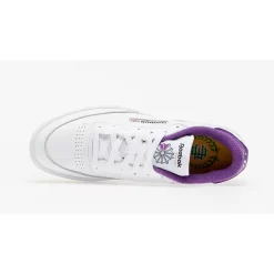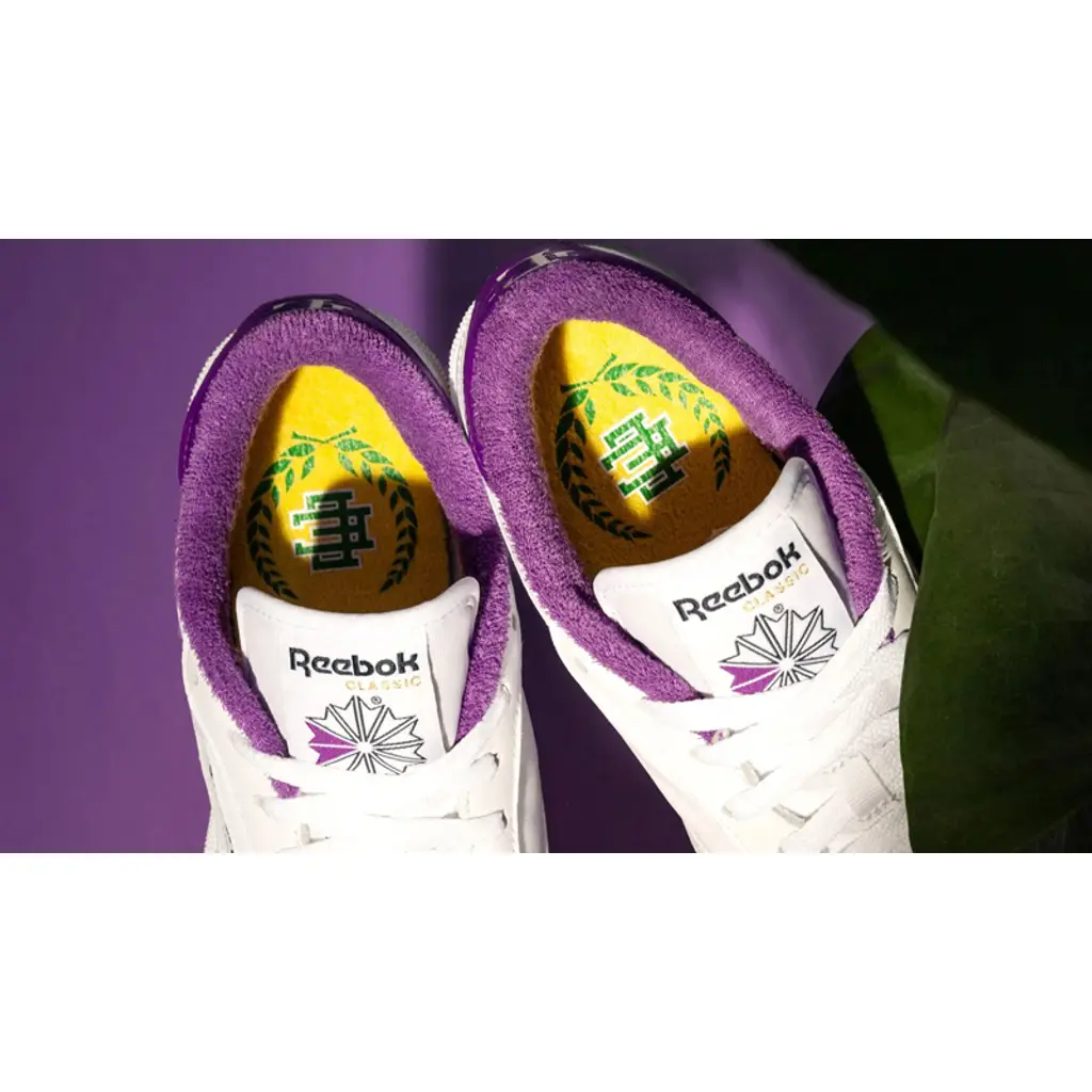The Eric Emanuel x Reebok Club C 85 is decked out in a Los Angeles Lakers-themed colourway, with a regal shade of purple on the inner lining and golden yellow hues on the outsole for a vibrant pop of colour.