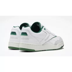 This BB 4000 II is covered in crisp and clean white leather, including the iconic Reebok side stripe, with a light grey suede toe cap and mudguard. Striking green outlines the edge of the Reebok brand panel and repeats on the eye stay accents, tongue lining, unique split Union Jack tongue branding, mesh sock liner and insole. A pure white EVA midsole and a herringbone-patterned green rubber outsole complete the look of this shoe.