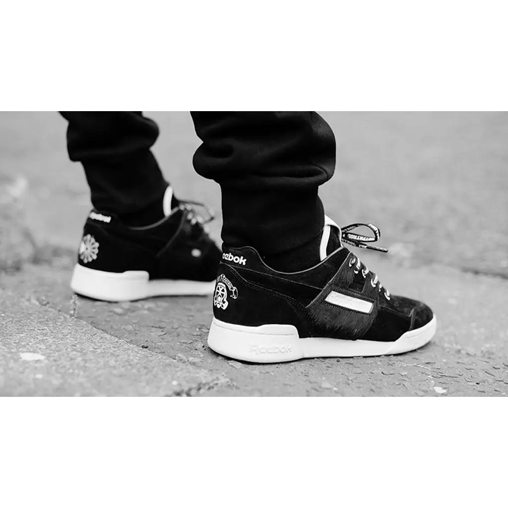 This fifth collaborative release sees a full black crafted suede upper complimented by furry overlays as a homage to that majectic creature. Contrasting hits of white feature throughout and all the iconic Reebok Workout Lo details make an appearance.