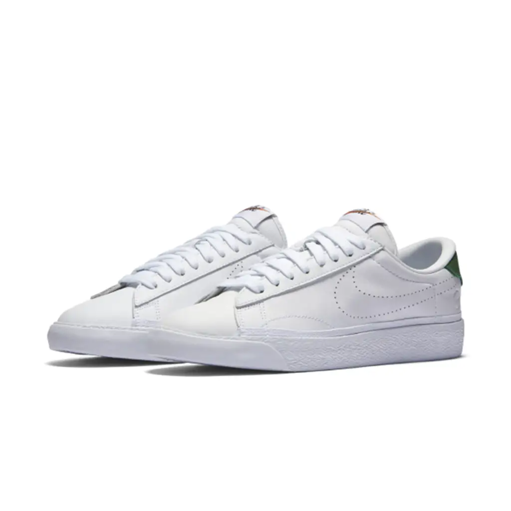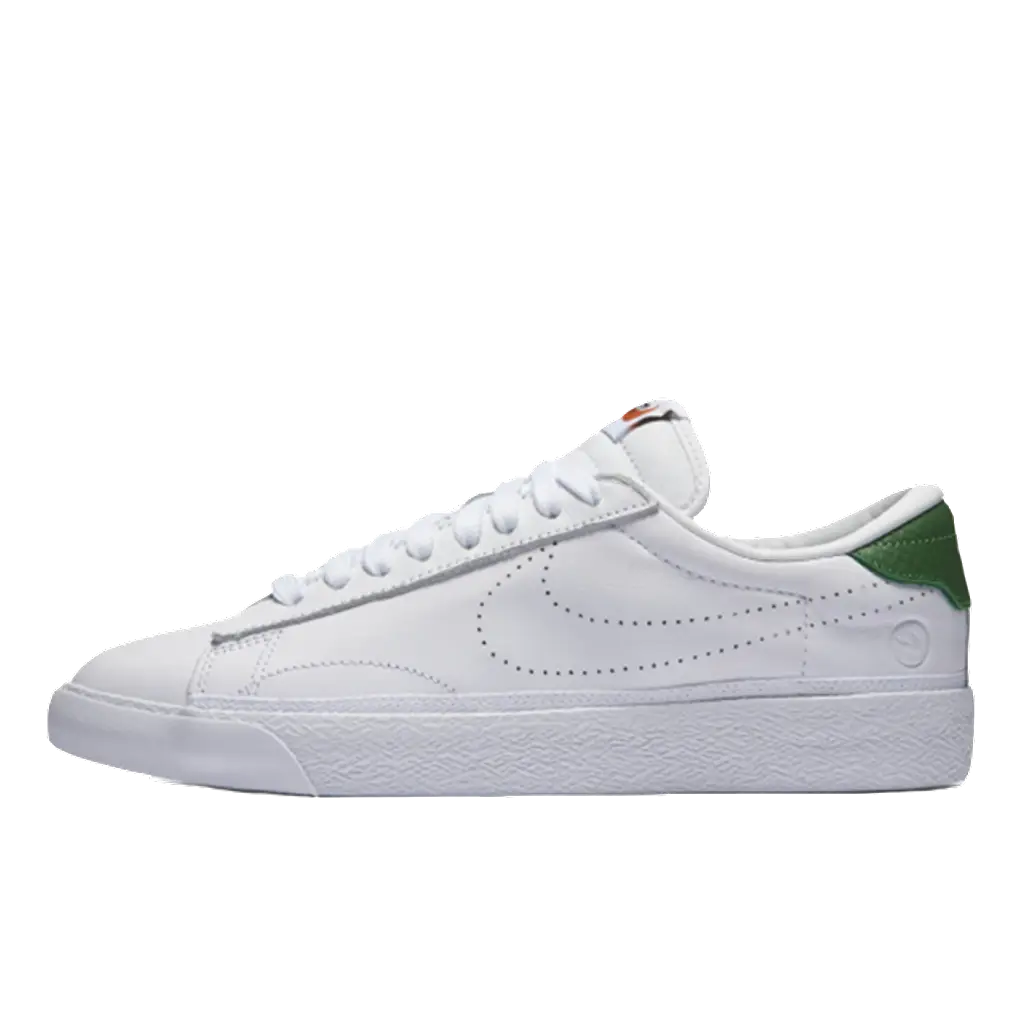 The signature ‘Tennis Classic’ detailing features throughout including that perforated Swoosh to the sidewall and leather decal to the rear. Adding a subtle splash of colour, this features in green. To compliment the simplistic look, that Zoom midsole underfoot remains understated in white and OG Nike branding is stamped to the tongue. Finally, the letters ‘G’ ‘G’ are plastered to the heel, a subtle nod to this exclusive collab.