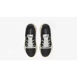 Painted in a colour blocked palette that comprises of black, cream, and light green hues, shimmering silver accents also feature for an additional pop of contrast. With an upper that’s crafted from rubberised leather and sporty mesh, this is the perfect shoe to rock all day, every day.