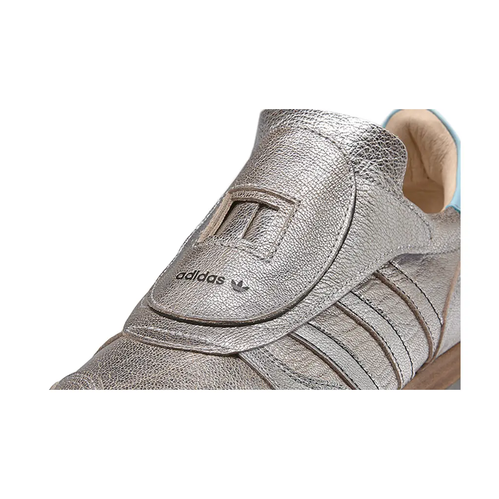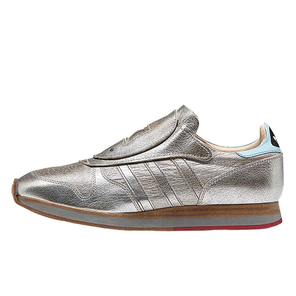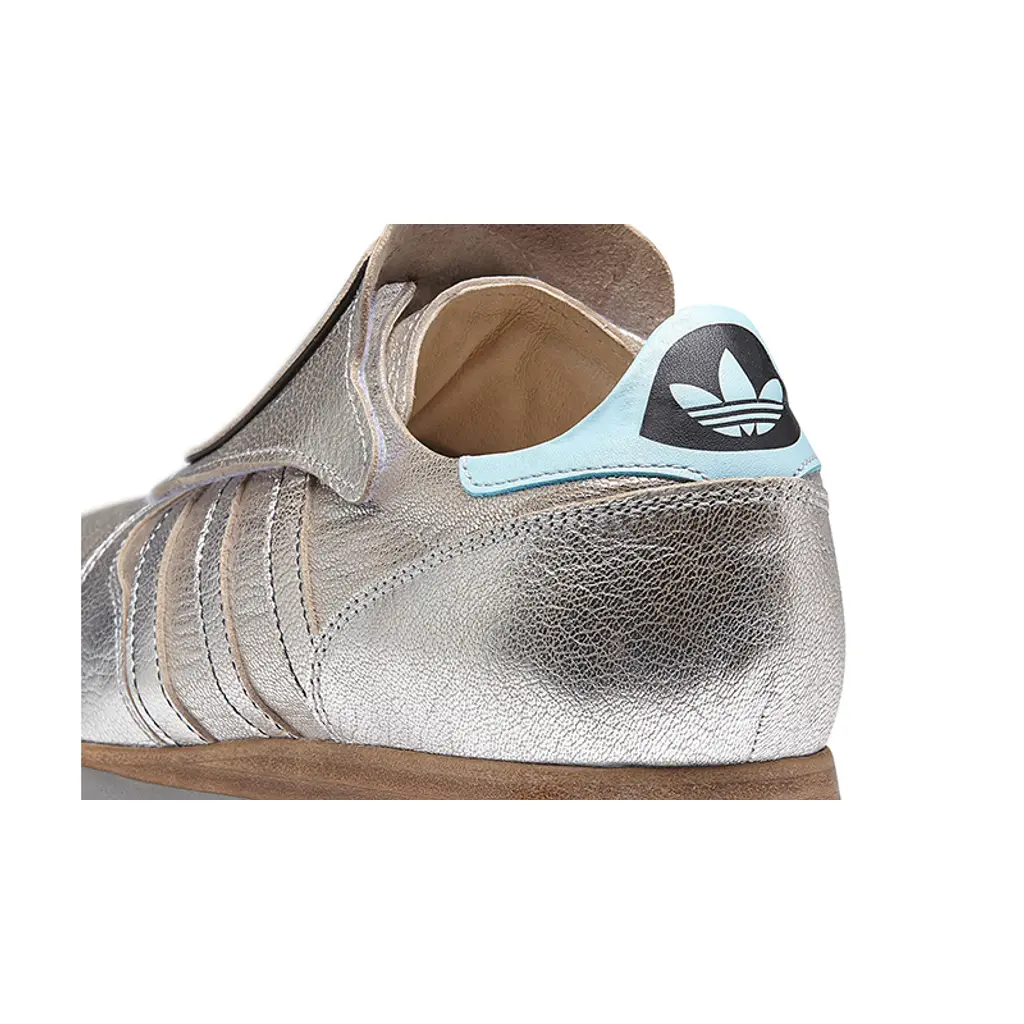Unlike the conventional styles, this pair does showcase the use of colour. A metallic silver finish extends throughout which looks especially striking in full grain leather. adidas Originals branding is stamped to the heel which contrasts in a vibrant shade of blue. Everything stays true to the original with the exception of that wooden-crafted midsole underfoot. This brings some brogue-esque styling to the sports orientated silhouette.