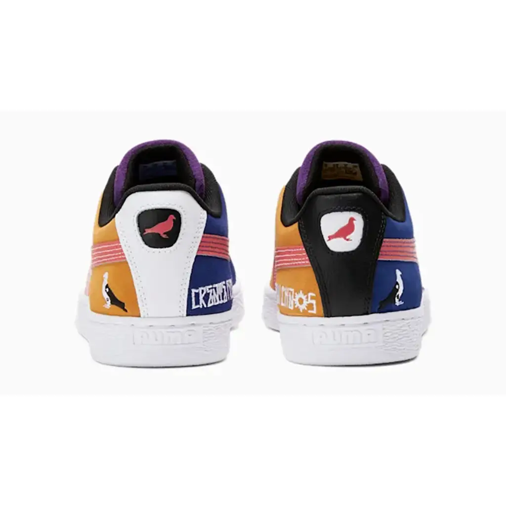 In tribute to the style’s 55th anniversary, Jeff Staple and PUMA have teamed up to deliver yet another viral drop of the Suede CFL in a mood-boosting Limoges colourway. The purple suede base is framed with bright orange on one side and deep blue on the other—notice how the shoes are coloured asymmetrically. As if that wasn’t enough colour-clashing, a wavy Formstrip panel in flamingo pink curves from the medial side to the heel. Signature branding comes in form of logo lettering just above the dynamic panel. It’s also edged with perforation ports for optimum breathability. Finally, cobranding comes via the tongues, while the heels put the spotlight on the New Yorker label.