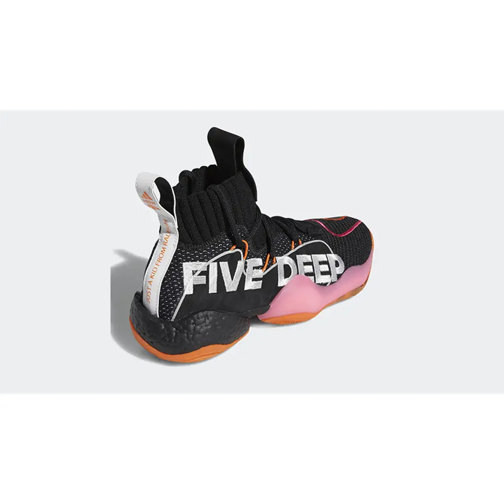 Featuring a predominantly black knit upper with orange, pink and white piping details, the John Wall x adidas Crazy BYW X PE Wall Way features several nods to John Wall’s legacy. “Wall Way” and “Five Deep” are embroidered in large white lettering on the lateral sides of the right and left shoe, respectively, while “Just a Kid from Raleigh” appears in orange on a white leather heel tab. Finally, the area codes for North Carolina, Kentucky and Washington D.C. are seen on the outsole as a shoutout to Wall’s homes. To round it all off, the John Wall x adidas Crazy BYW X PE Wall Way sits atop a podular Boost sole unit for additional comfort and a smoother stride.