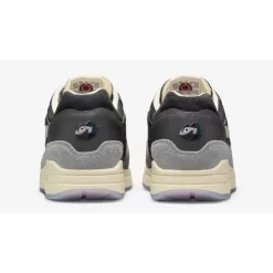 This Air Max 1’s upper is replete with lovely little details. The base is tumbled leather in navy blue while the eyestay panel is done up in the same hue but with unique-looking pony hair. The collar and the forefoot accent are navy blue suede. A hairy grey suede wraps around the entire bottom section of the shoe and is punctuated by an embroidered flower with a mini Swoosh as a stem on the lateral toe. Kasina branding embellishes the tongue tag while a mini Swoosh is on the wooden lace deubrés. A special “kireogi” or mandarin duck hangtag accompanies the shoe, symbolizing loyalty, an apt metaphor for both collaborators that are celebrating their 25th and 35th anniversaries, respectively. A Sail-coloured midsole and an icy translucent rubber outsole complete the sneaker’s look.