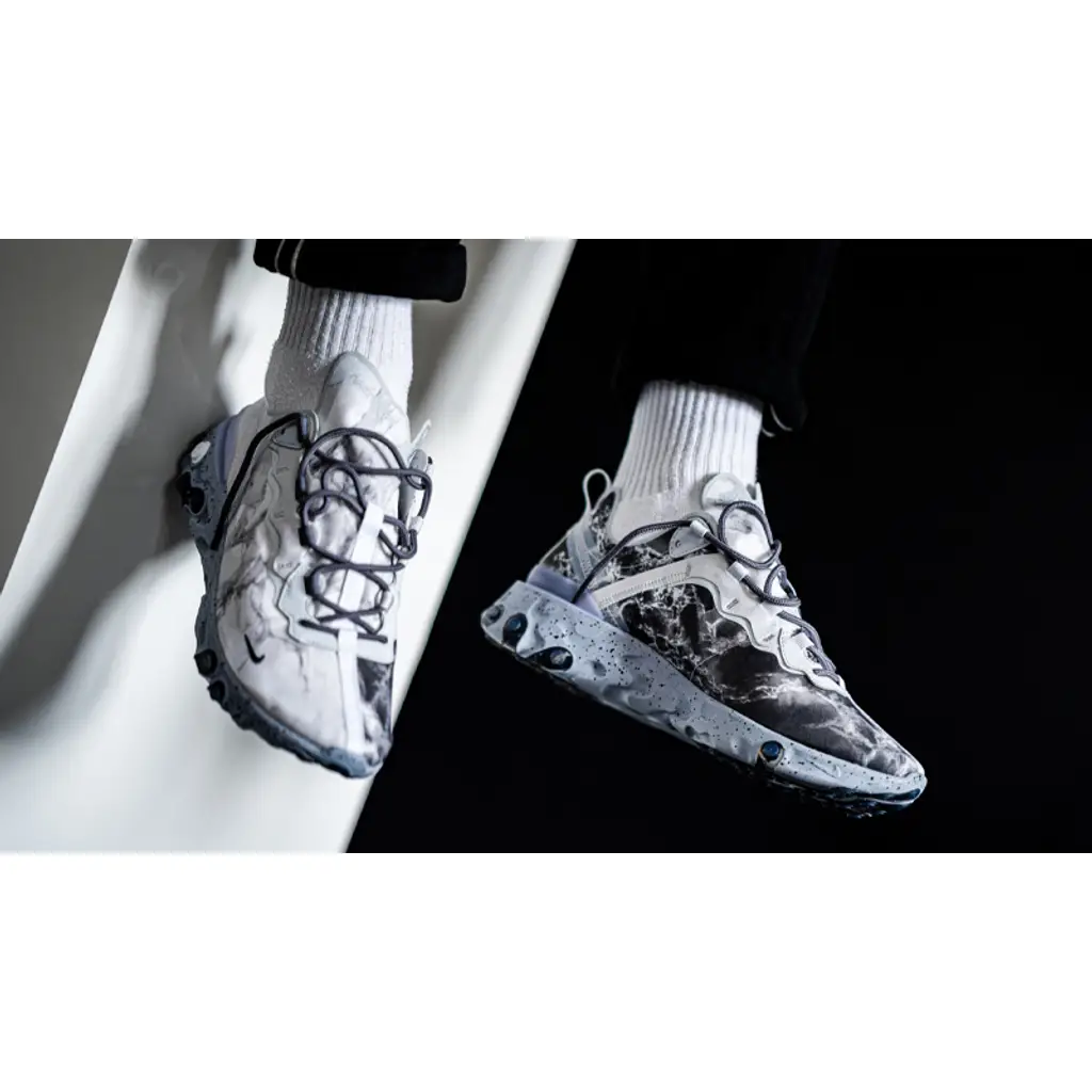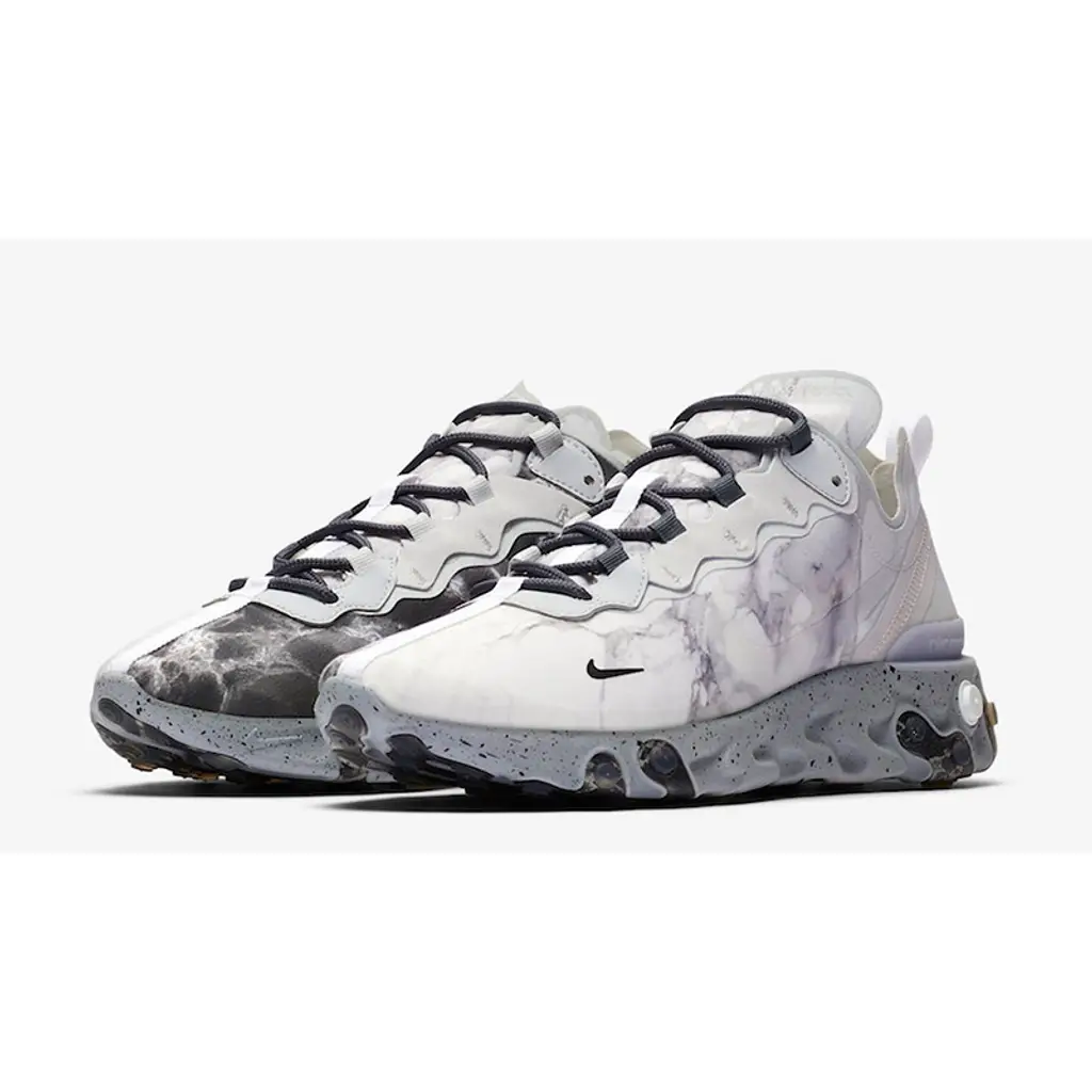 Featuring premium marble detailing that’s sure to turn heads, the laterals are decked out in white while the medials are painted in a stealthy black. Full grain leather forms the lacing system, while a tiny Swoosh hits the toe box and heel. Moving downwards, a full length React foam unit is present in grey, and it’s peppered with black specks for a cement-like aesthetic. Additional marble detailing then extends towards the rubber rivets and the outsole, creating a flawless look that’s made to be admired.