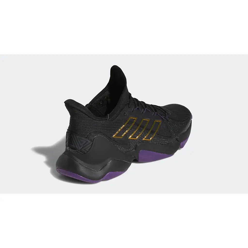 This Impact FLX has a “Core Black/Gold Metallic/Tribe Purple” colour scheme directly taken from the Black Panther movie. The black textile and mesh upper are made in part from recycled content and feature shiny geometric patterns. The Three Stripes are in the form of metallic gold rectangle outlines on both mid-panels of the shoe. A black BOOST-enhanced midsole and a black-and-Tribe-Purple rubber outsole cap off the design of this shoe.
