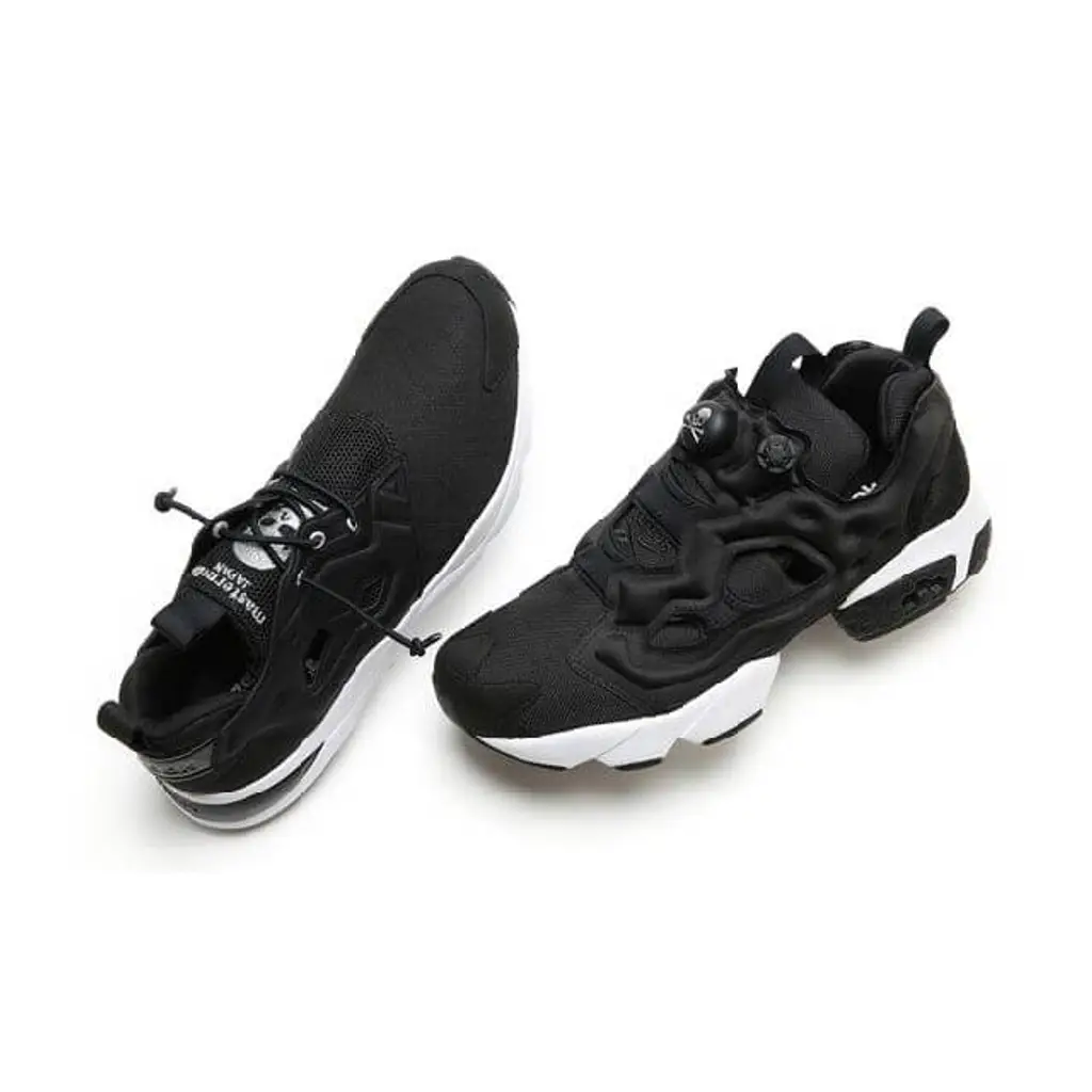 The pair is highlighted in a black and white mixed colourway. The shoe features the usual all-black upper and sits on top of a white midsole like the previous releases. The sneaker comes with matching black laces, metal eyelets and has enough perforations for optimum ventilation. There is subtle Reebok branding on the heel with the Mastermind skull logo branding in white on the tongue patch. The pair has additional Reebok branding and is finished off with a dark sole unit.