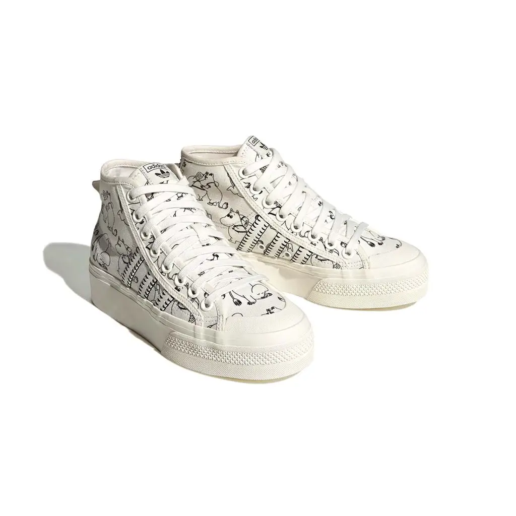 Moomin is the most recent brand to join adidas’ famous roster of collaborations. The Moomin x adidas Nizza Platform Mid sneakers in Off White are made from durable canvas that’s been printed with the much-loved characters from the novel series, from the eye-stay overlay up to the tongue. A streamlined gum midsole in a tonal shade keeps the focus firmly on the upper and features multi-textured patterns at the toe for reduced abrasion. The pull tab at the heel makes slipping the pair on super easy, while the mid-top design provides ample support for the ankle.