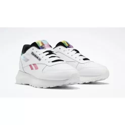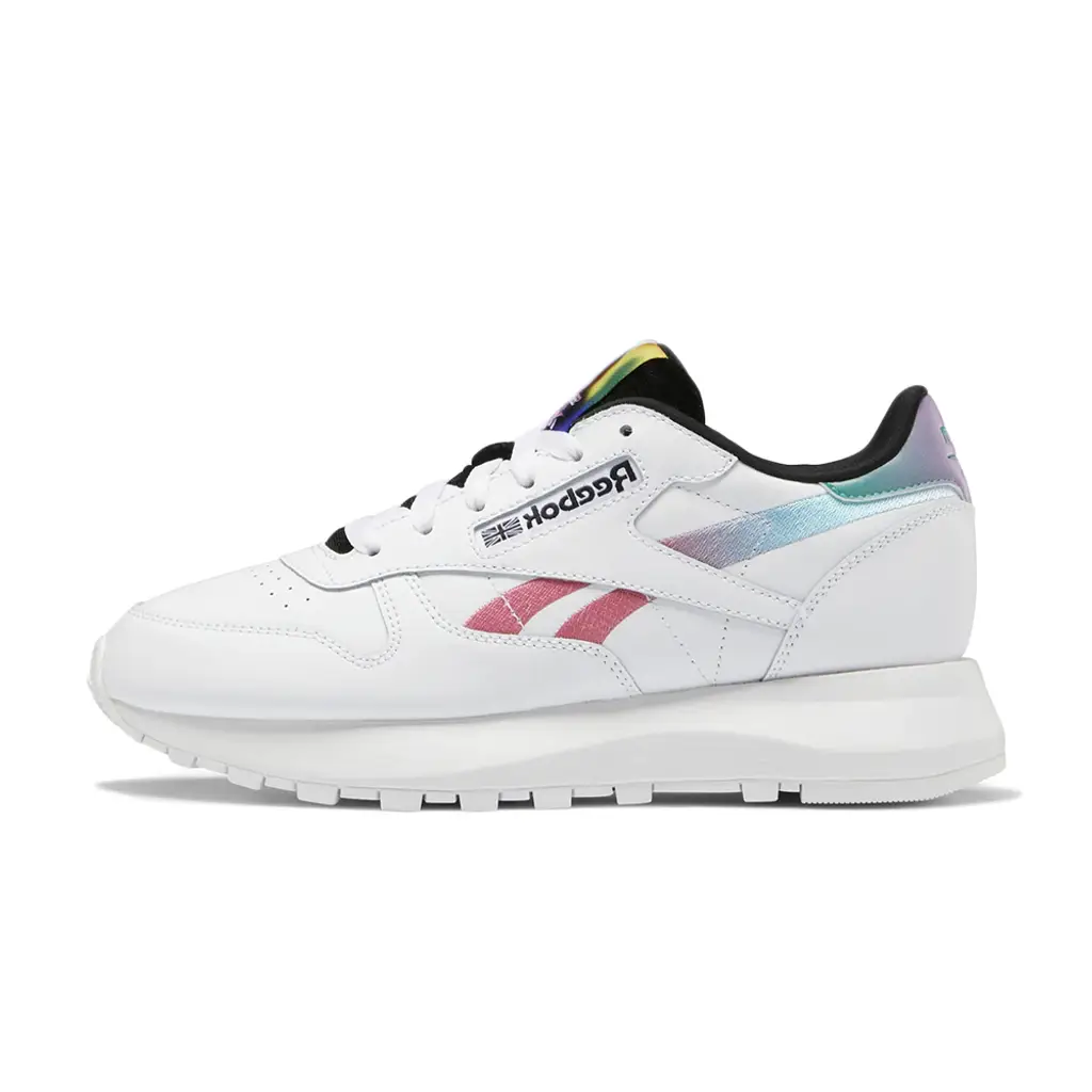 Celebrating love in all its forms, this Classic Leather shoe has an all-Ftwr-White upper which contrasts nicely with the key LGBTQIA+ flag colours of pink, purple and blue which form the Reebok Vector at the mid-panels. The black nylon tongue also features a rainbow-themed tag with eleven rainbow colours and the classic Reebok logo in white. A black-and-white EVA midsole and a white rubber outsole finish off the look of this sneaker.