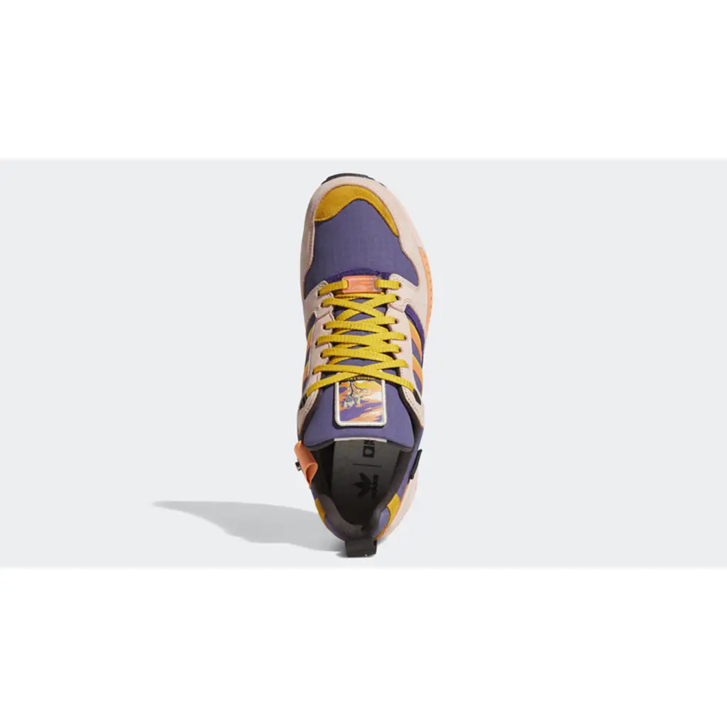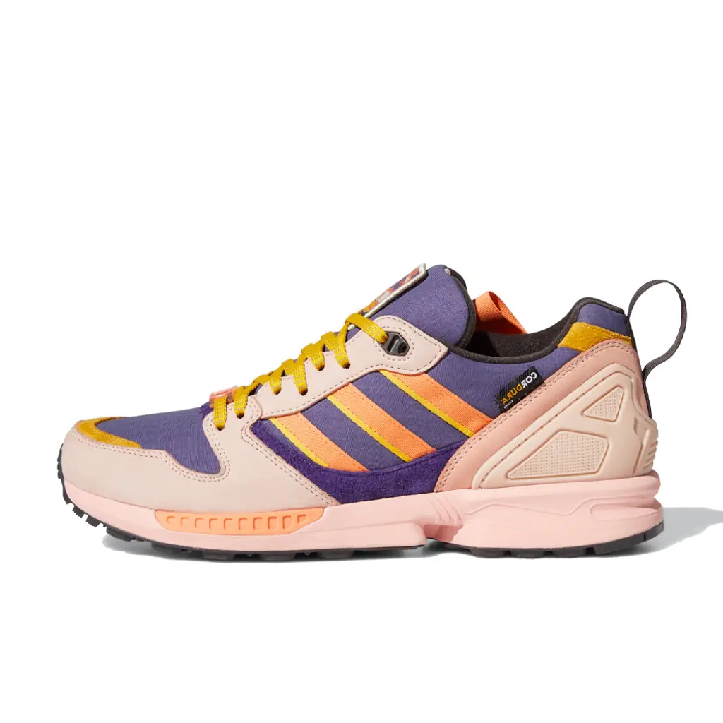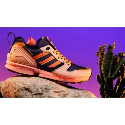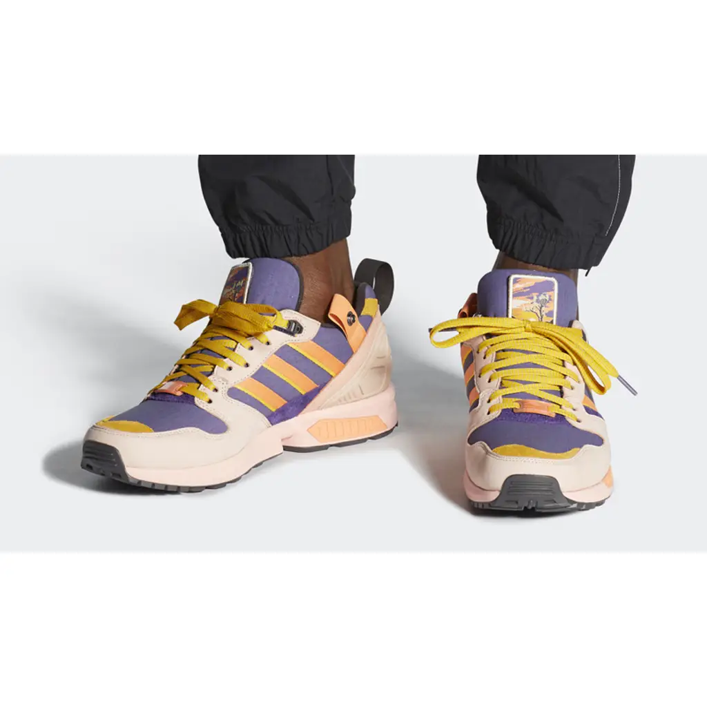 In a nod to the park’s dusty palette, this ZX 5000 comes in rich hues reminiscent of the stunning desert sky above California’s Joshua Tree National Park. There are subtle purple underlays, with blush pink leather overlays and bold shades of orange running throughout the shoe.