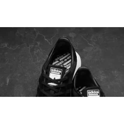 A blacked-out midsole is another first for adidas’s Iniki Range. It looks just as good as you’d imagine, contrasted by a white coloured outsole underfoot. To complete the look, Neighborhood branding features across the sidewall and also hits the heel in oversized white coloured text.