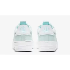 Sticking true to the Pixels we’ve seen before, an angular, white midsole sits atop a white outsole, whilst the upper is comprised of mint suede. A cut-out Swoosh breaks up the ‘Ghost Aqua’ colouring with an injection of light grey, and the heel is covered in white leather housing the titular ‘Glacier Ice’ cubic Air Force 1 Pixel logo. Equipped with matching lace unit, this blue AF1 Pixel is perfect for your winter rotation.