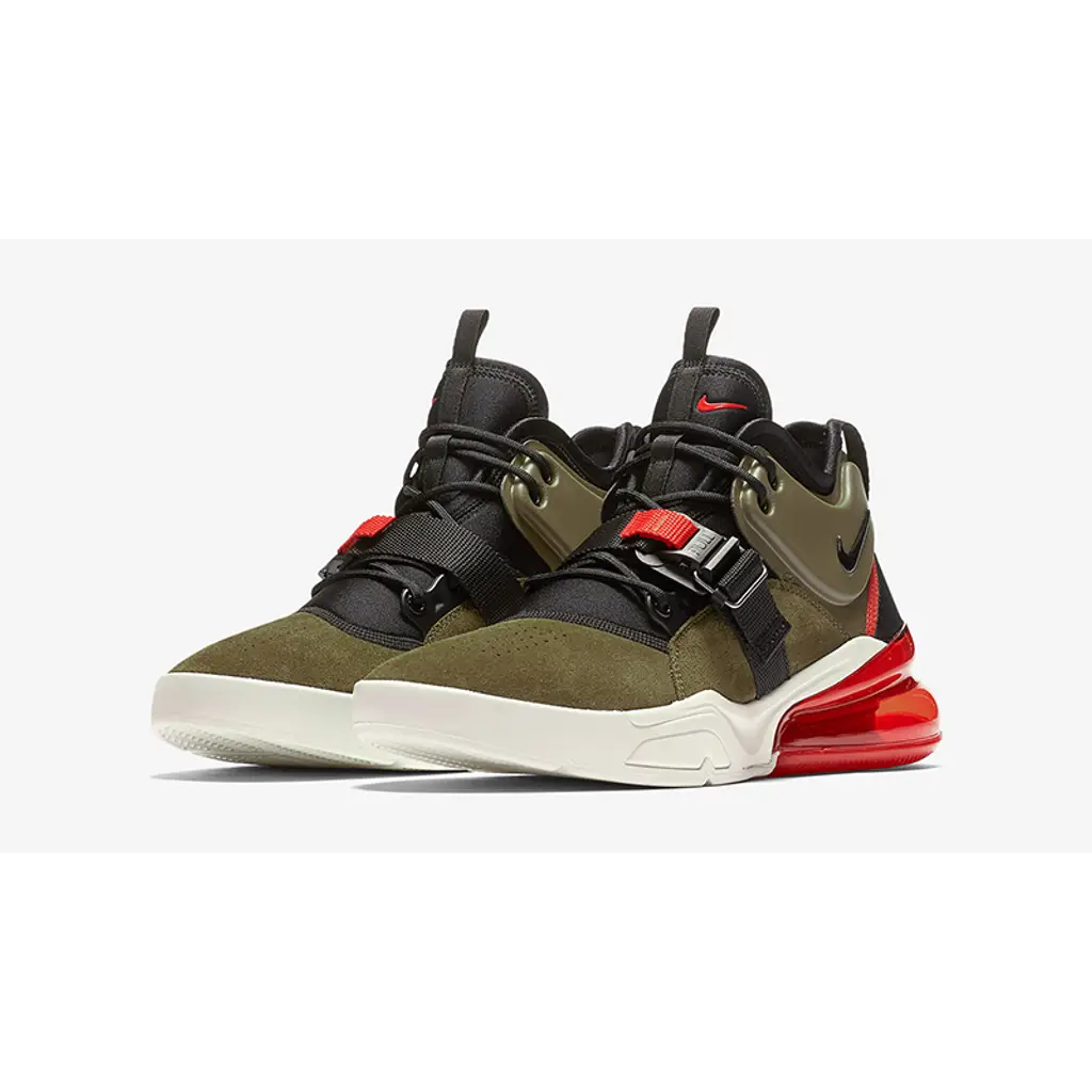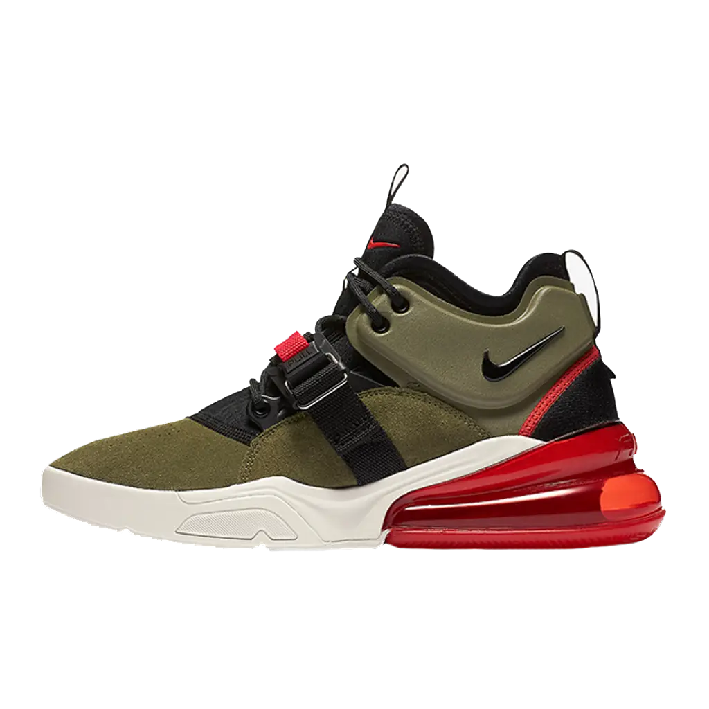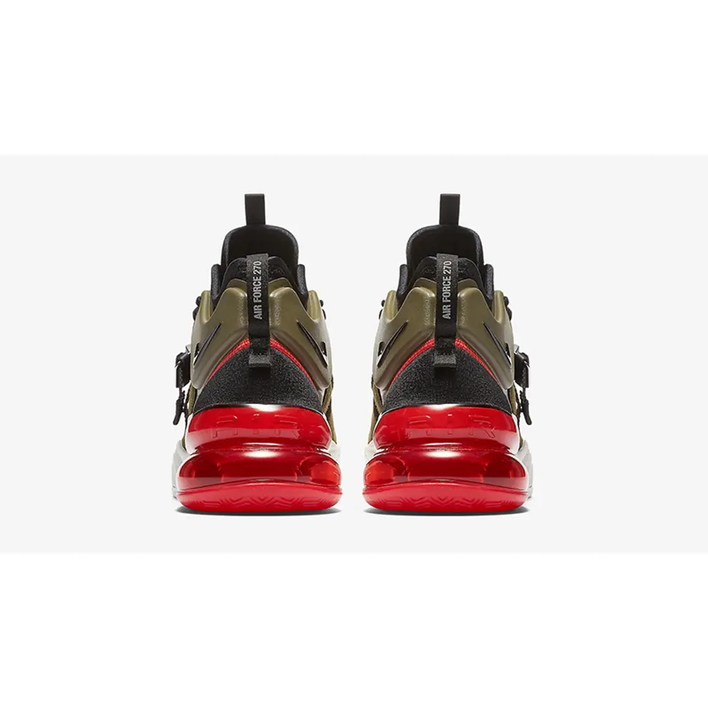 The Air Force 270 is characterised by a cutting-edge upper. Despite that contemporary theme, it still borrows some style influences from the iconic basketball silhouette. On this pair, a seasonal mix of khaki green is offset by sections of black and vibrant pops of red.