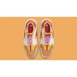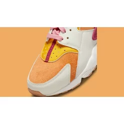 It’s hard not to smile when you see the Nike Air Huarache Sail Rush Maroon. This cheery pair features a zesty colourway that will surely brighten up any outfit. The upper features different textures and symphony of colours. There’s tangerine on the neoprene side panels and touches of marigold in the throat and ankle. Elsewhere, the toe box is embellished with honey-coloured suede. The final layer are the off-white leather cut-outs in the toe cap and eye stays. Rounding off the vibrant design are hints of magenta in the heel clip, laces and tongue branding.