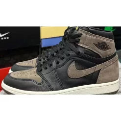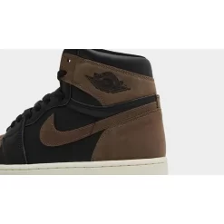 The Air Jordan 1 High arrives in its traditional colour blocking, with black leather used on the toe, ankle collar and side walls. A light brown suede is introduced onto the rest of the panelling, including the toe box, heel and ankle support. When it comes to this particular shade of brown, comparisons can be drawn to the AJ1 “Dark Mocha” from 2020, although this time contrasted against a predominantly black leather. Underfoot, a lighter story takes place as the Jordan 1 tread is dressed in brown, with a sail colour wrapped around the midsole to balance the darker tones of the upper.