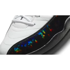 Master the art of elegance with the Air Jordan 12 Low 25 Years in China! This sophisticated pair will immediately elevate any look with its sleek design. The piece starts with a quilted upper dressed in bright white tumbled leather. It is then spruced up with a glossy patent leather toe that has fun holographic details. Meanwhile, the textured mudguard completes the fancy look of this Air Jordan 12 Low. Other noteworthy details include the commemorative silver touches at the heel tab and insole. Finishing this refined sneaker is a lightweight sole unit.