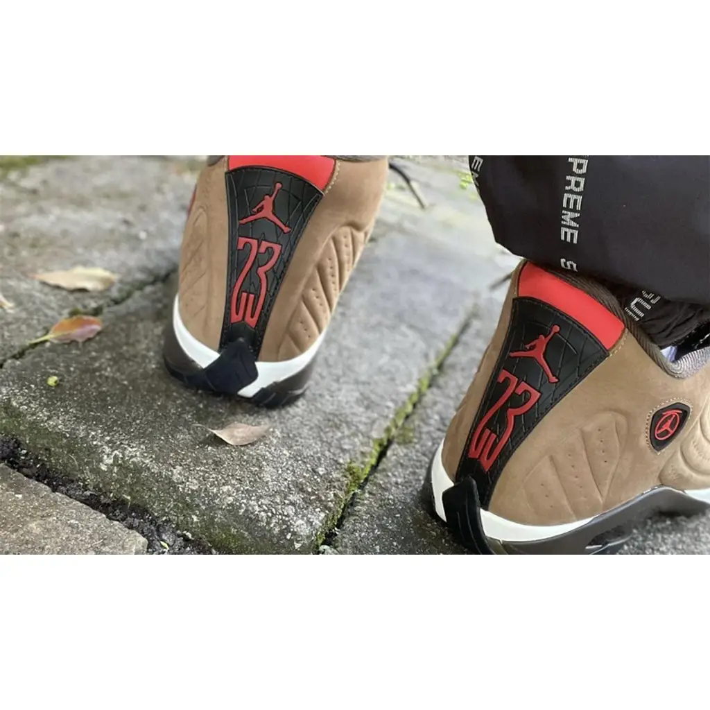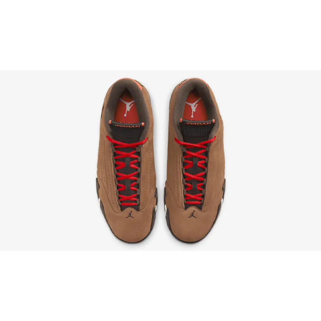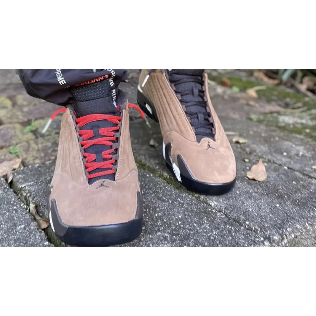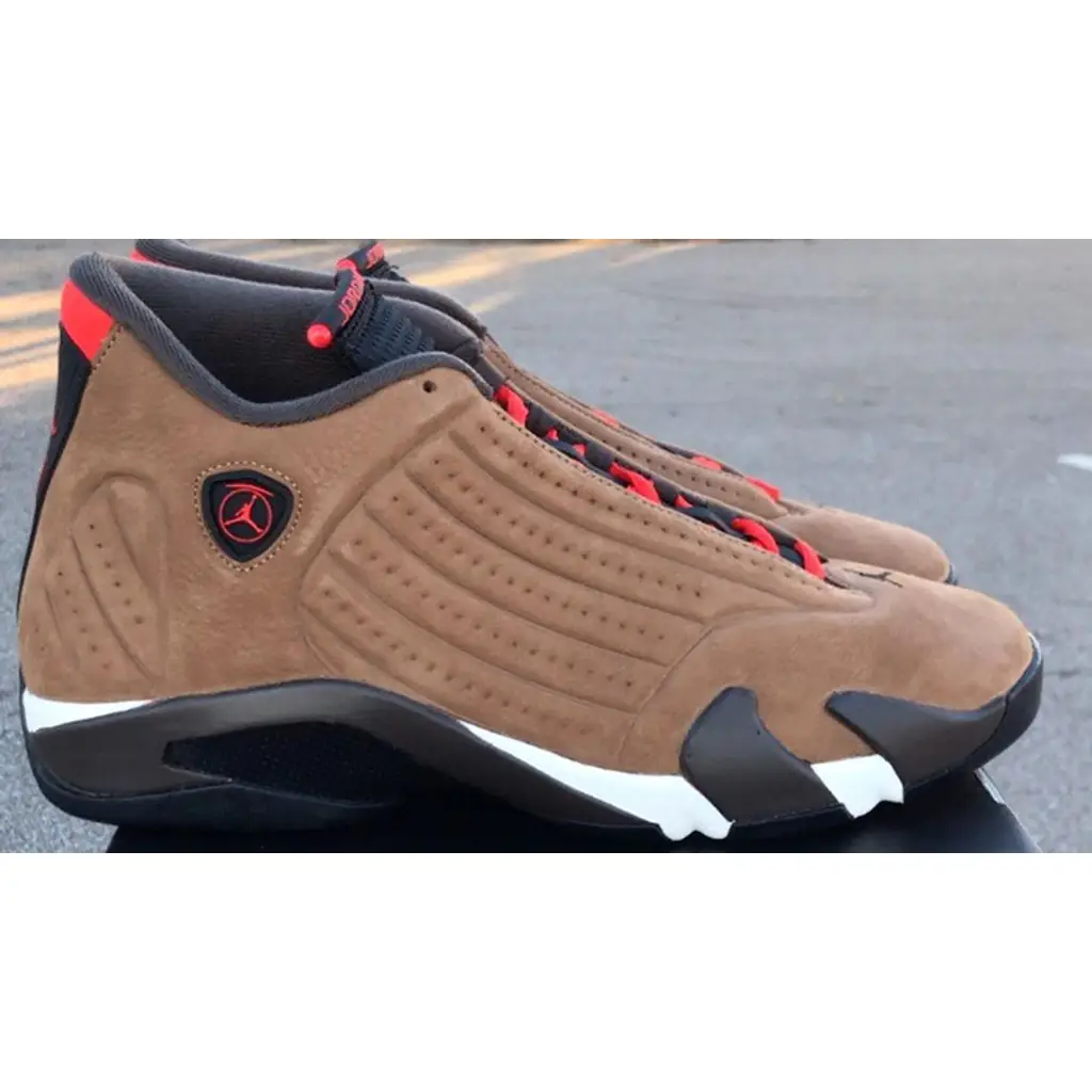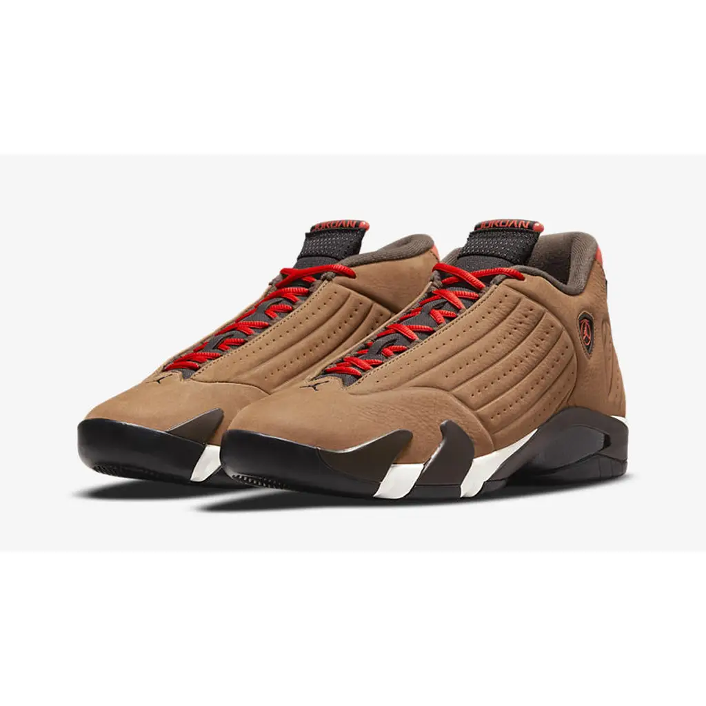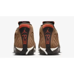 Get winter-ready with the Air Jordan 14 Winterized. This snug slip-on pair will keep your feet cosy in the midst of the icy season. The entirety of the vacuum-sealed, moulded upper is dressed in a water-resistant suede in a coffee-brown hue which is nicely complemented with pops of a bright red-orange in the upper throat and ankle. Adding to its sleek look is the eccentric midsole which features a bold vine-like design in dark brown and white that extends slightly into the upper. As is the case for Air Jordan 14 silhouettes, this shoe promises great traction and comfortable cushioning.