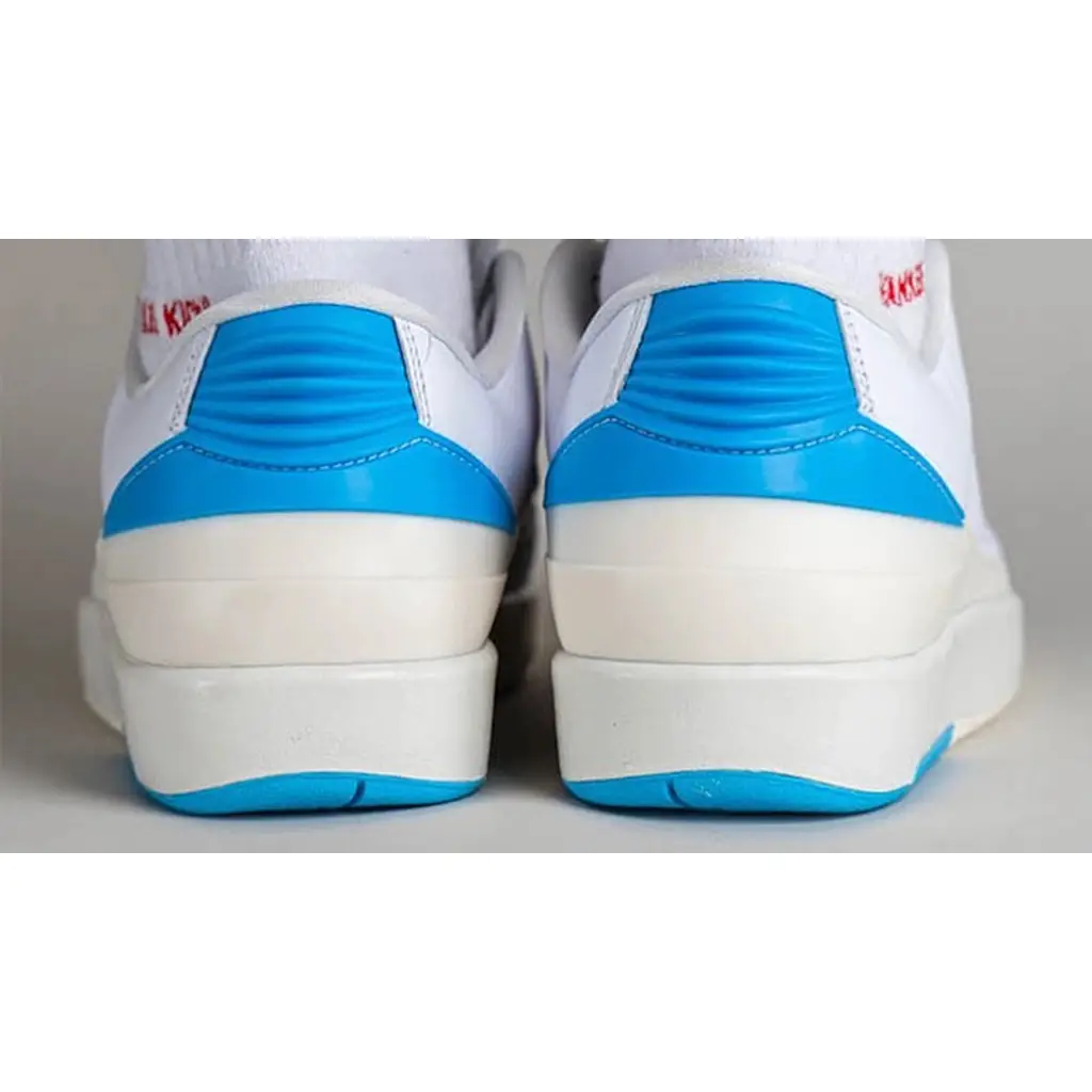 Clean lines and minimalism dominate the Air Jordan 2 Low UNC to Chicago. The pair’s simple but impactful design includes a tumbled white leather upper with a matching crisp smooth mudguard. Meanwhile, the rear is decorated with hits of “University Blue” while the maroon accent on the upper adds a sophisticated touch. Further down, the chunky off-white sole unit has a vintage flair and is packed with cushioning for all-day comfort.