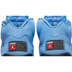 This isn’t to say we haven’t seen this colourway on the Air Jordan 5 before, with the Trophy Room and UNC football team Player Exclusive editions already introducing the silhouette to the palette. Although this iteration is the most accessible and coldest drops of the AJ5 that we’ve seen in a while, drawing in levels of attention not experienced since the Off-White versions in 2020. Of course the signature lace lock and 3M tongue return, with extra plush padding around the collar. A Team Jordan patch is stitched onto the heel, a feature we saw on the AJ4 that harked back to the NBA jerseys from the ‘90s. On the inside of each foot are the words “HEART.” and “SOUL.”, giving you the motivation you need while lacing these up.