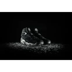 Following the Aqua edition, this Chrome variation is set to release as a part of this years Holiday Collection. This amazing looking shoe is crafted with a premium black durabuck upper, which includes contrasting white and grey accents on the iconic logo. There are also hints of grey and white on the tongue branding as well as on the heel region. The pair also includes the traditional cross straps with eye catching chrome detailing on the buckle of the strap. A beautiful chrome and black fused midsole and a dark outsole completes the overall look of this stunning shoe.