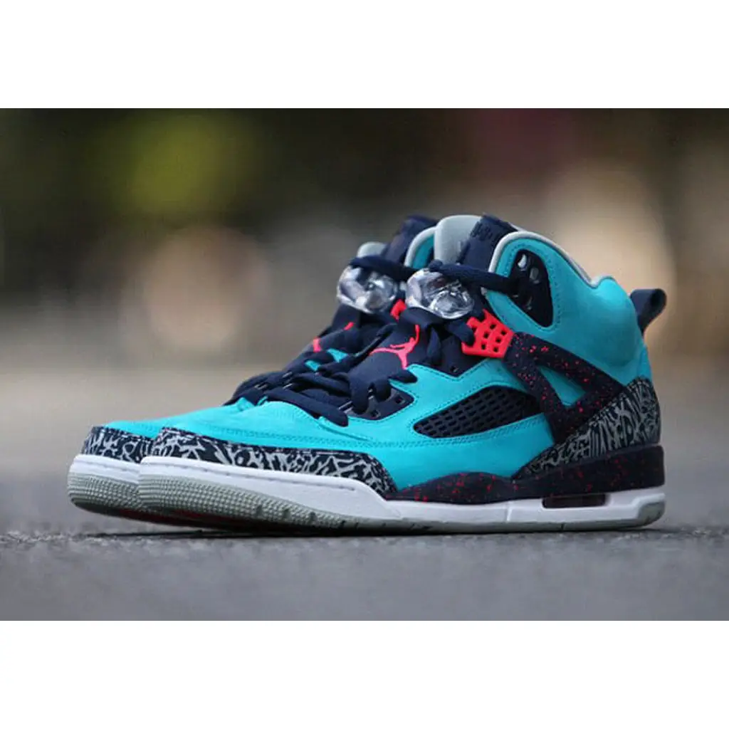 The Nike Air Jordan Spizike Turquoise Blue is this year’s first pair of Jordan Spizike which is set to hit the stores soon. This unique pair of shoes is dressed in a vibrant colourway and the overall design is certainly eye catching. We expect these shoes will attract the more adventurous sneakerhead who like exciting and vibrant shoes.