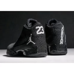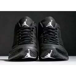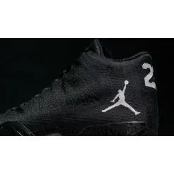 The Nike Air Jordan XX9 are the lightest Air Jordan shoe to date. This pair features a re-engineered flight-plate and is crafted with a one piece woven upper. This Blackout model is fully dressed in an all black base with white Jumpman logo on the tongue, sides and toe. There is also the number 23 and Jordan branding on the back heel.