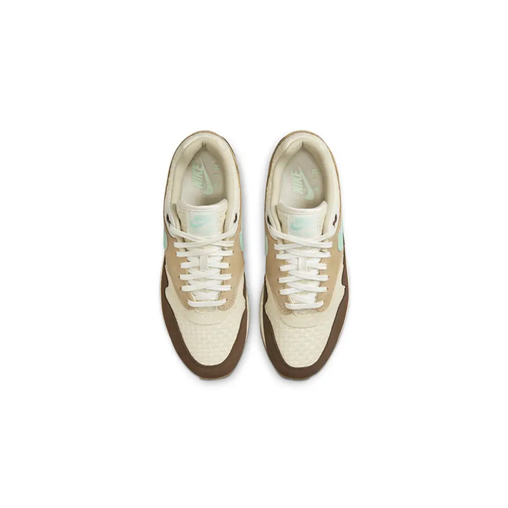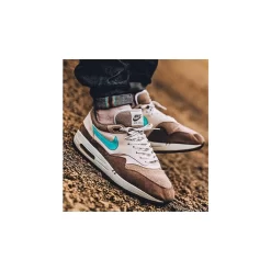 First released in 2004, the Nike Air Max 1 Crepe Hemp celebrates the 35th anniversary of the AM1 silhouette by blessing us with the combination of tan and teal hues once again. This AM 1 features a hemp burlap fabric on the upper, as well as brown suede and blue and cream leather panelling. The design is finished up with a rustic-looking, gum-coloured outsole.