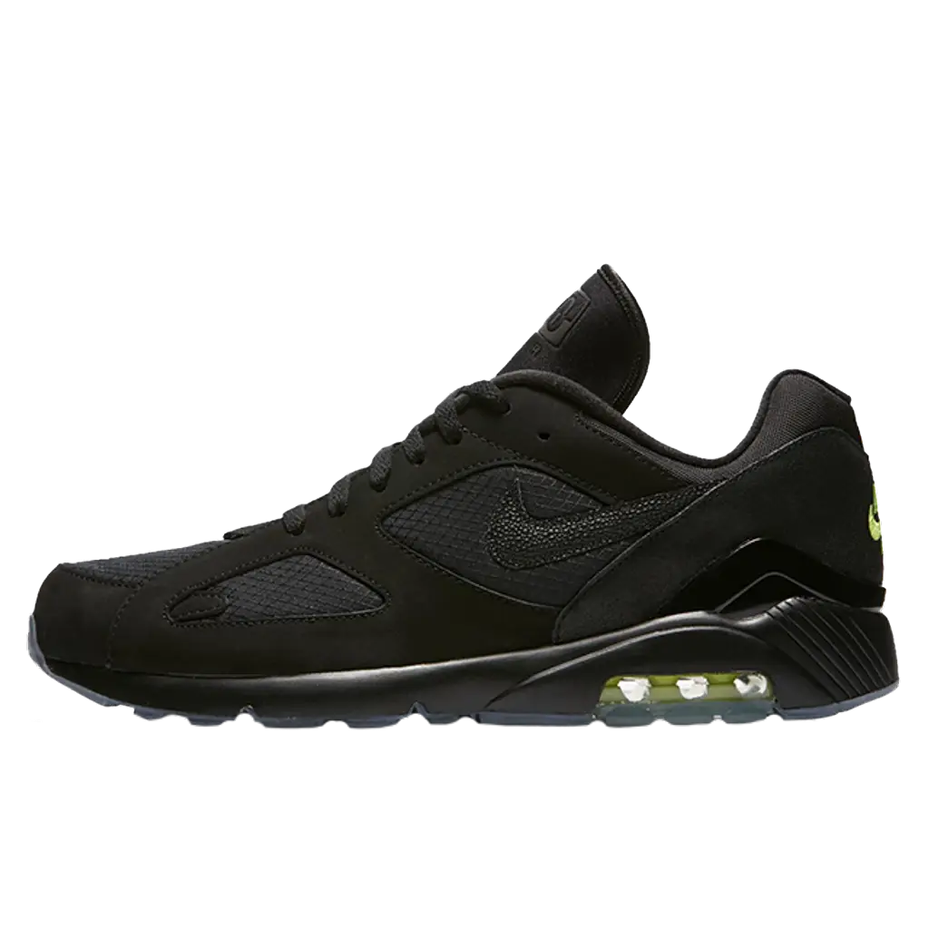 As stealthy as it gets, the Nike Air Max 180 Black Volt features a murdered out upper with bold green accents throughout. Finely crafted from a combination of materials including premium leather and breathable mesh, ‘Volt’ hues make their way to the Air bubble down below, offering additional comfort and a smoother stride, without compromising on style and substance.