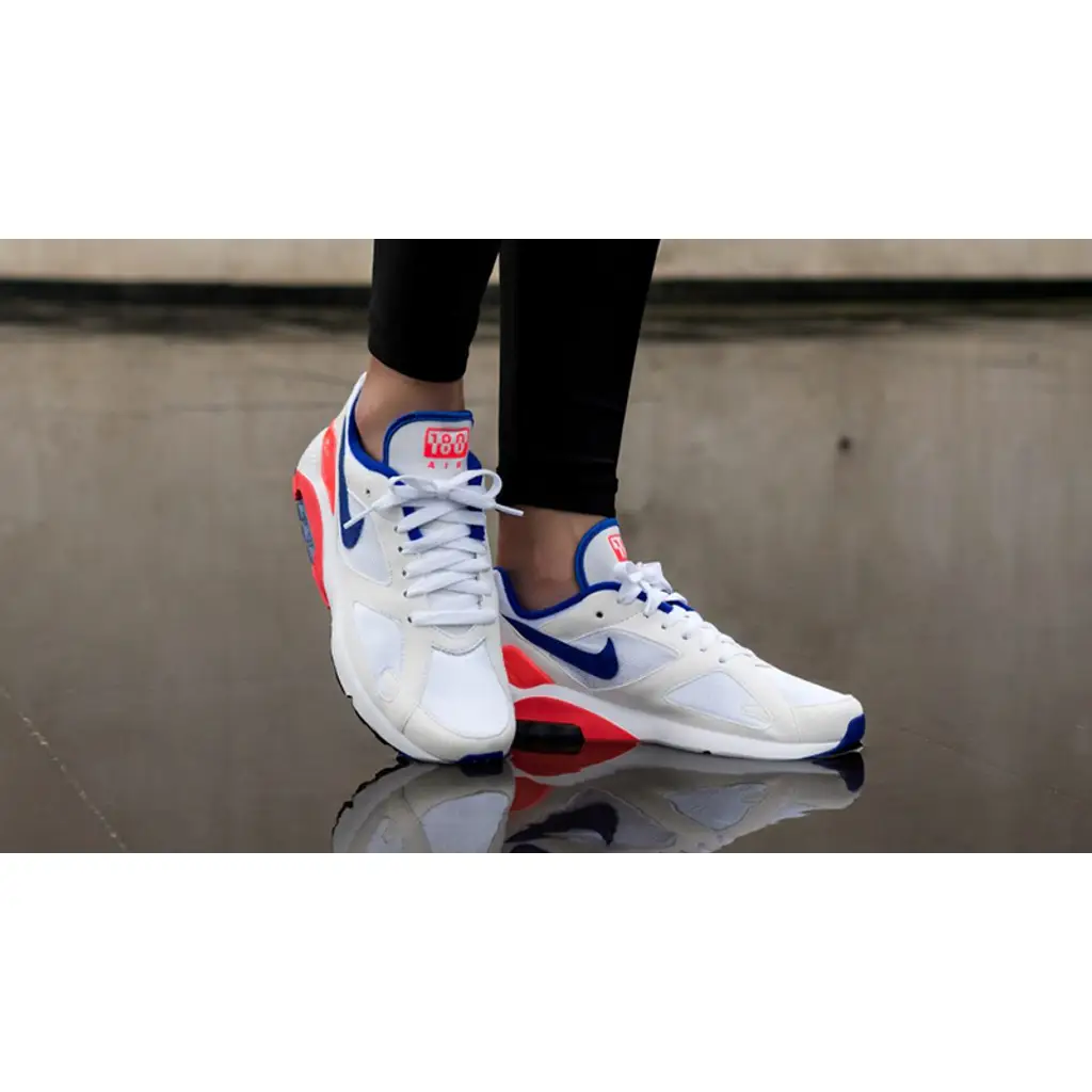 The Air Max 180 Ultramarine is crafted from a combination of lightweight mesh and leather. A base shade of white keeps the look clean, putting all emphasis on those vibrant pops of colour.
