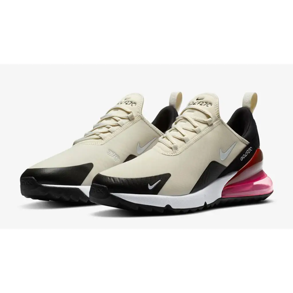 The Nike Air Max 270 G Light Bone Hot Punch is a brand-new golf rendition of one of Nike’s best-selling silhouettes in recent years! The Air Max 270 launched back in 2018 and was marketed as the tallest ever Air Max sneaker, and has since gone on to become a modern-day classic. Now re-engineered for golf purposes, the AM270 will no doubt be a huge hit on the greens!