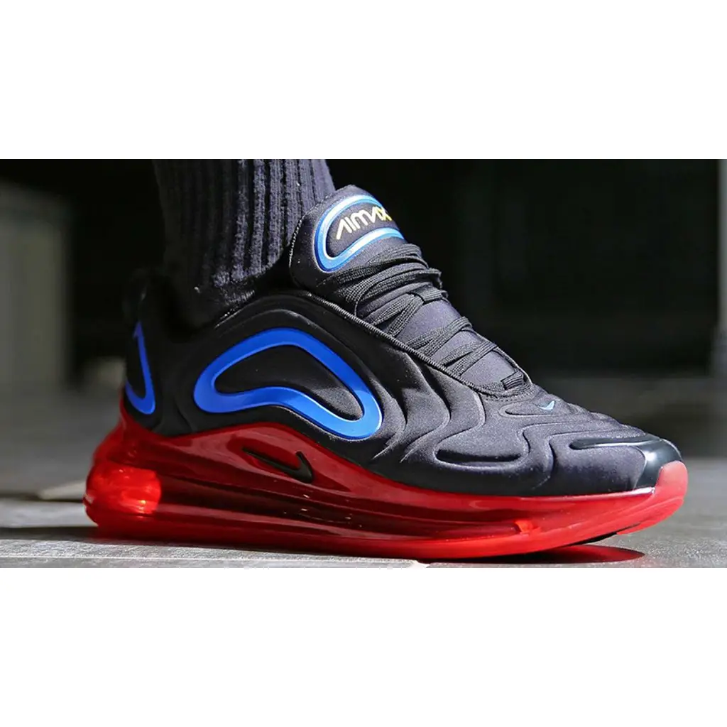 Featuring the specially engineered mesh upper that we all know and love, the Air Max 720 Black Red is painted in a distinctive black, blue, and red colour scheme that can be described as somewhat patriotic.