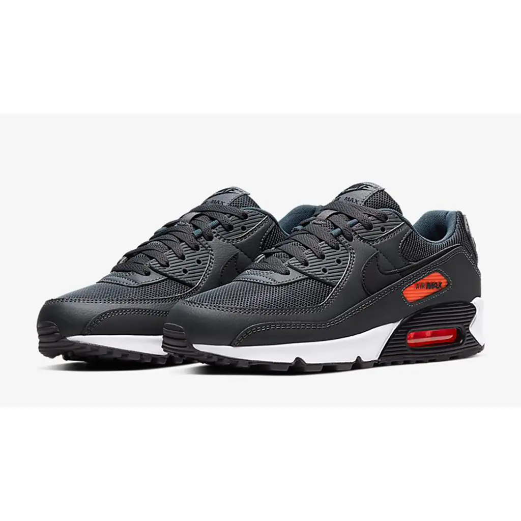The Nike Air Max 90 Iron Grey is a brand-new rendition of the classic silhouette that celebrates its 30th anniversary this year. The AM90 is dressed in a stealthy colourway that showcases predominately black, and is then accentuated with shades of grey, a white midsole and laser orange accents.