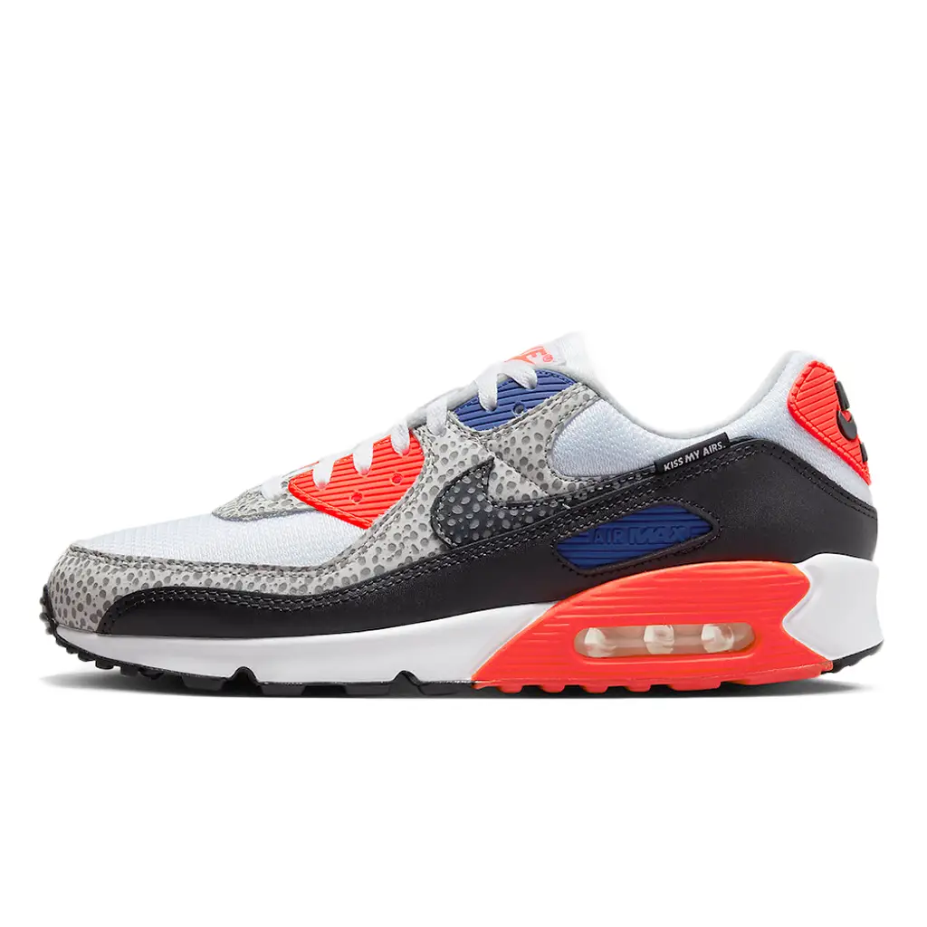Nike adds to its playful selection of the Kiss My Airs line-up with this “Safari” Air Max 90 edition. Referencing iconic colourways is always a strong option in the Swoosh’s playbook, a method that manages to tug on the heartstrings of sneakerheads both old and new. This Air Max 90 does just that, combining old features with a modern twist, resulting in this fun addition to the Air Max line up for 2023.