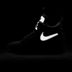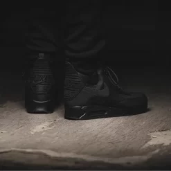 This pair is a rugged variant of one of Nikes most iconic silhouettes. It features an all-black body, all black midsole and all black sole a true triple black edition. There is visible Air Max cushioning unit on the midsole area. It is crafted with premium leather and also offers a re-tooled tongue, heel & out-sole. In addition, it also has some 3M detailing and the iconic Nike Swoosh logo on the side.
