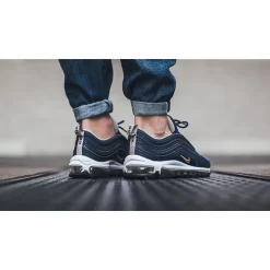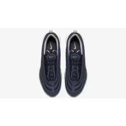 The ‘Midnight Navy’ Air Max 97, otherwise known as the ‘USA’, arrives with eye-catching details throughout. This is unlike any Air Max 97 you’ve ever seen. Starting from the ground upwards, this shoe comes fitted with a gold coloured Air Unit underfoot. This contrasts perfectly against a white coloured midsole.
