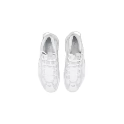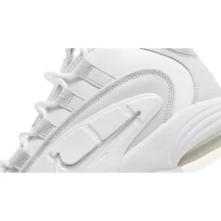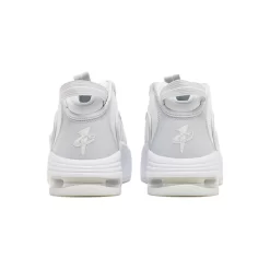 The Nike Air Max Penny 1 Pure Platinum are a ‘colourless’ take on a Nike favourite. This Pure Platinum iteration is made using smooth white leather panels that are arranged dynamically across the upper. Platinum-grey enters via the panelling, too, creating depth and interest. The chunky midsole blends into the upper via the rubber-framed Swoosh motif on the medial sides. Meanwhile, the tubular lace-up fastening is held in place via knitted tabs that correspond with the exaggerated pull tabs at the heels. The most unusual feature? The collars. They curve upward before notching down at the heels.