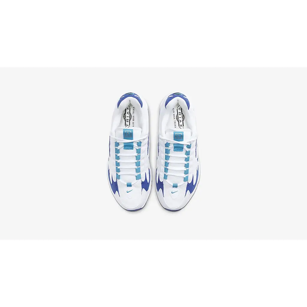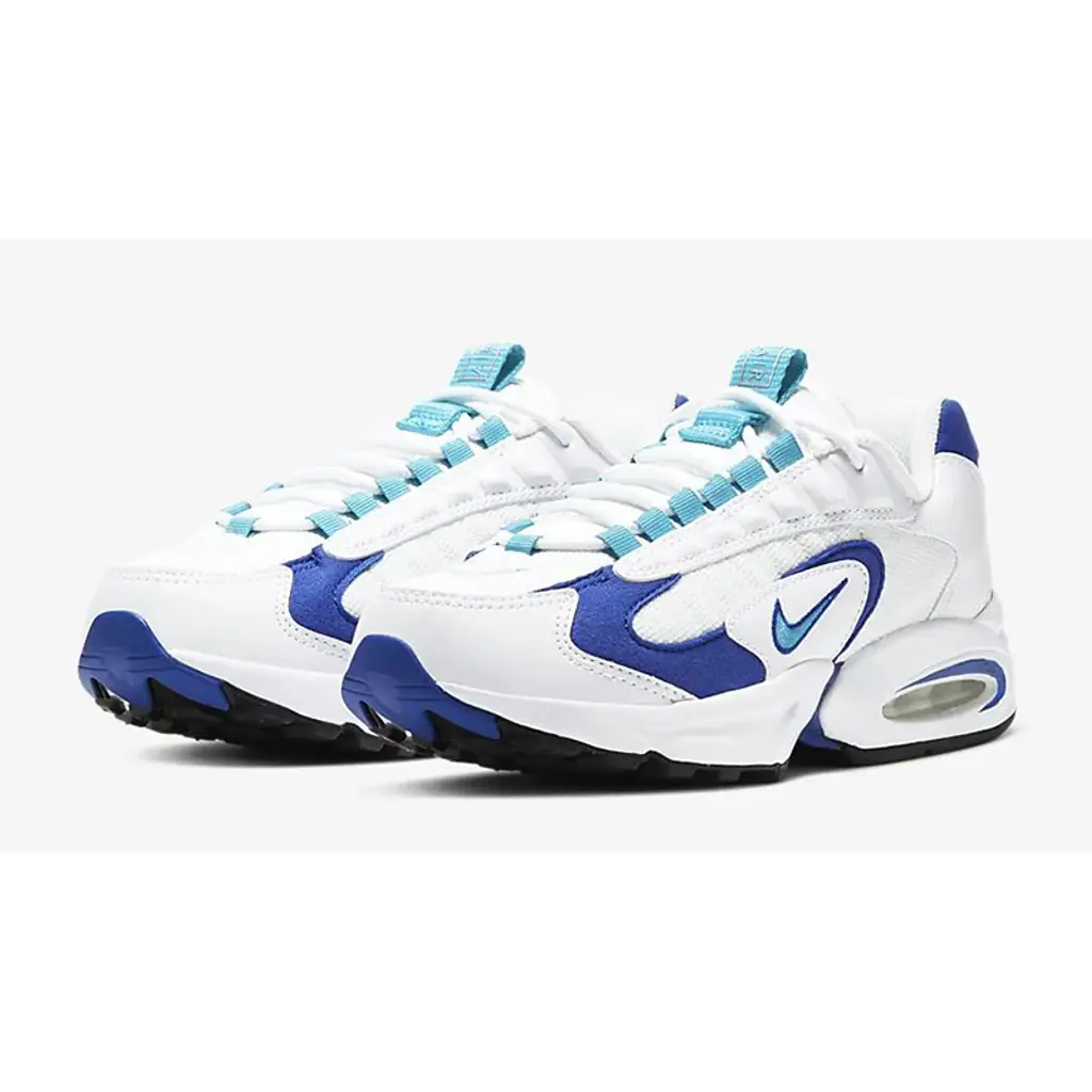 The ’90s silhouette is making a comeback, taking advantage of the hype for old school style silhouettes. The vibrant hits of blue add a striking flash of colour to the clean white upper and midsole of this white and blue Air Max Triax.