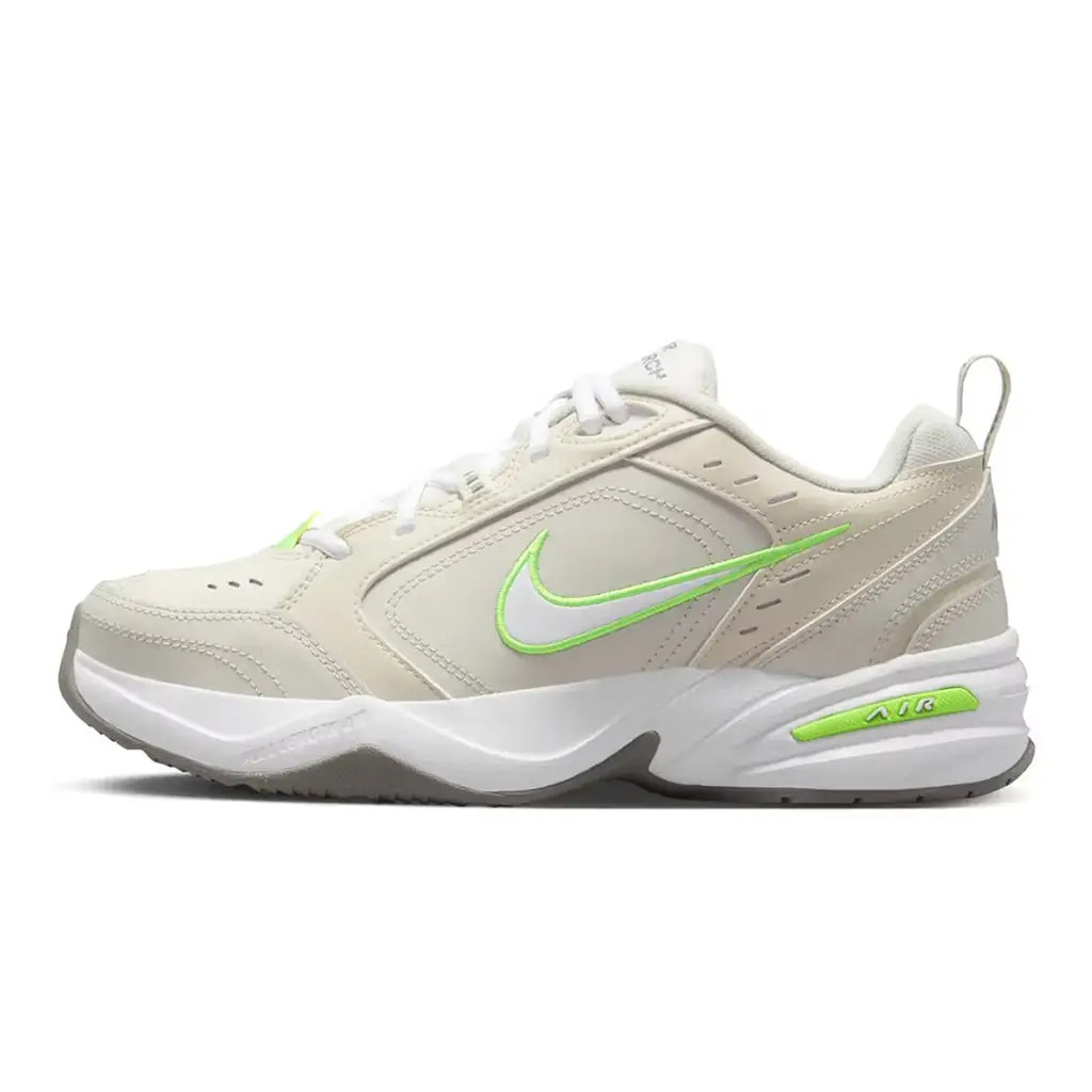 Nike’s stylish indoor trainers, the Air Monarch 4, has a new variation in light neutrals and a hint of neon green. Get ready for the Nike Air Monarch 4 “Light Bone”.