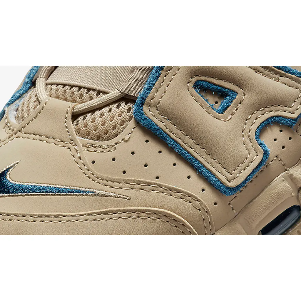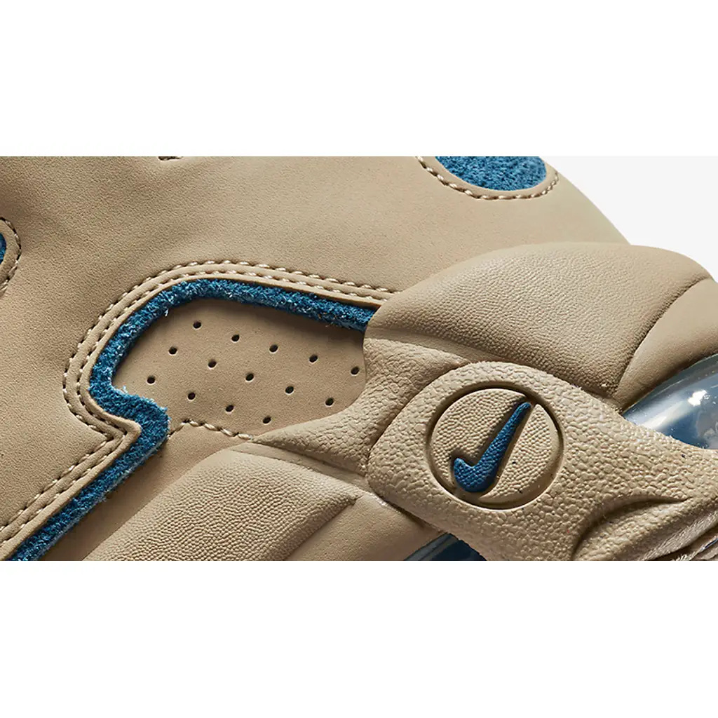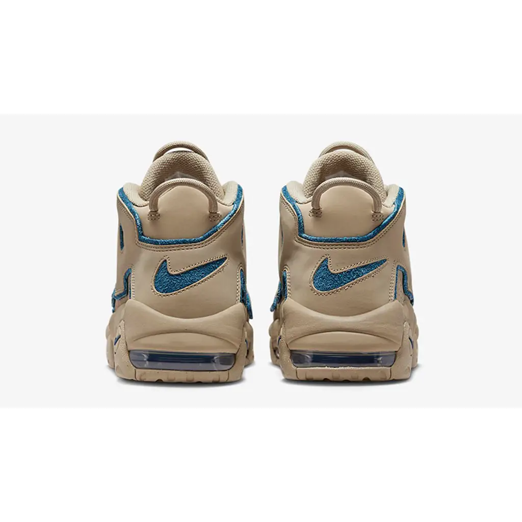 The Wilson Smith-designed Nike Air More Uptempo has a new iteration in an earth-toned boulder-like hue with pops of blue. Take a closer look at the Nike Air More Uptempo 96 Limestone.