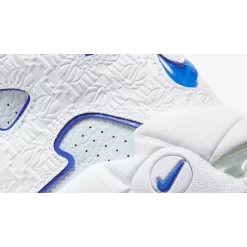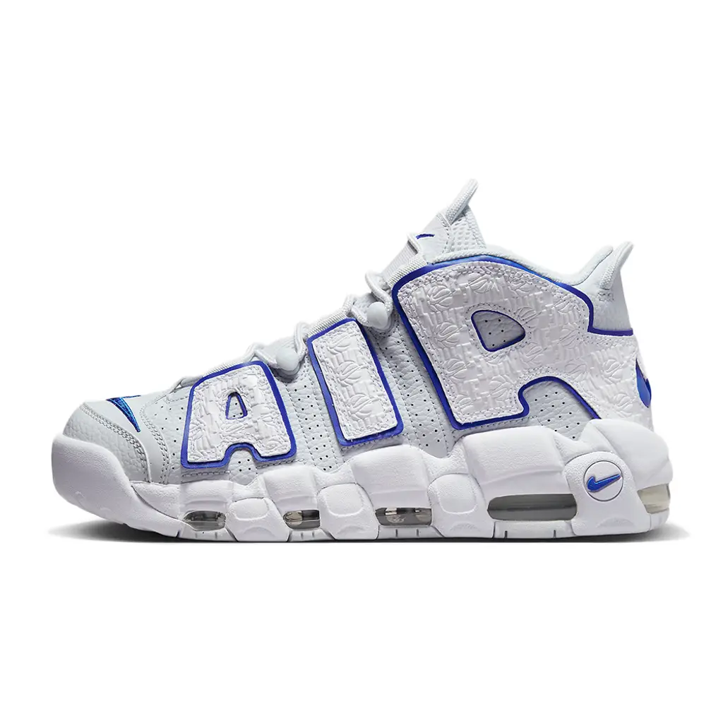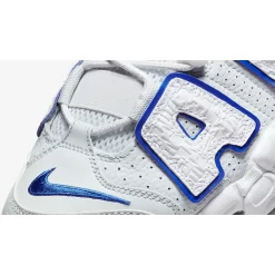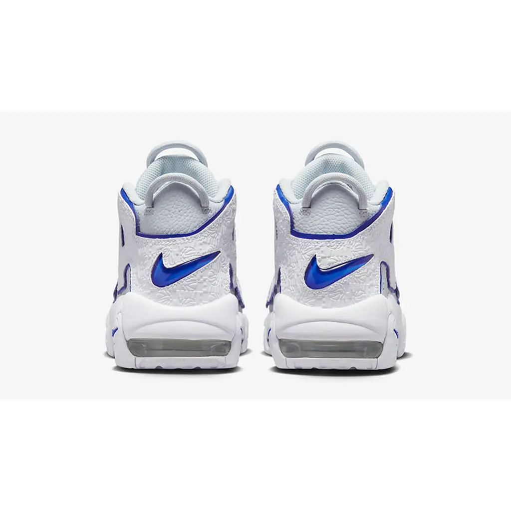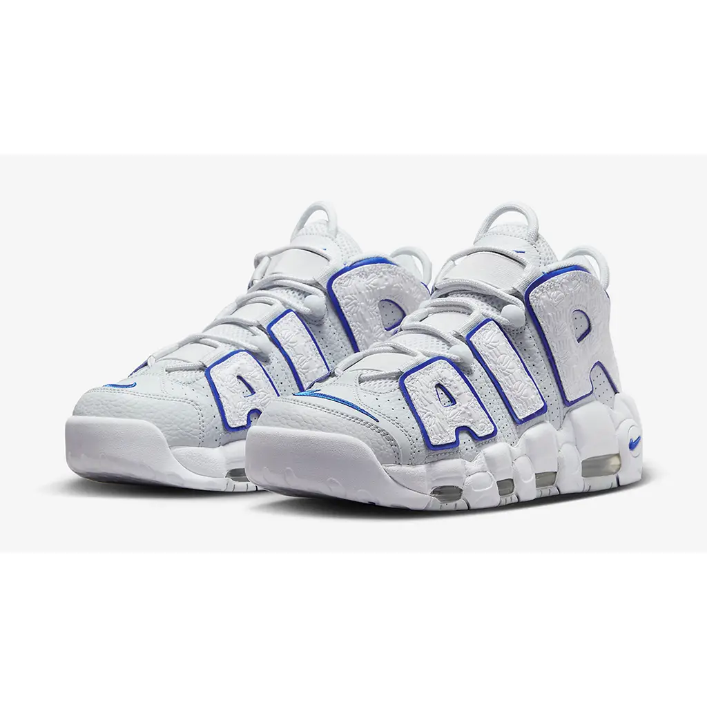 Nike’s performance basketball silhouette inspired by ‘90s graffiti and pop art, the Air More Uptempo, joins the brand’s “Embossed” collection. Introducing the Nike Air More Uptempo Embossed White Royal Blue.