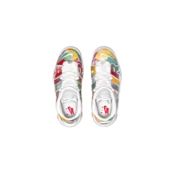 Dropping as part of Nike ‘European’ pack, the Nike Air More Uptempo UK Multi is painted in an ‘Amarillo’, ‘Speed Red’, ‘Neptune Green’, and ‘White’ colour scheme. Featuring a blotchy, almost powder dye like design, a white based provides the sneaker with a contrasted look. A clean midsole and rubber outsole sit underfoot, and the UK’s state logo on the heels completes the design