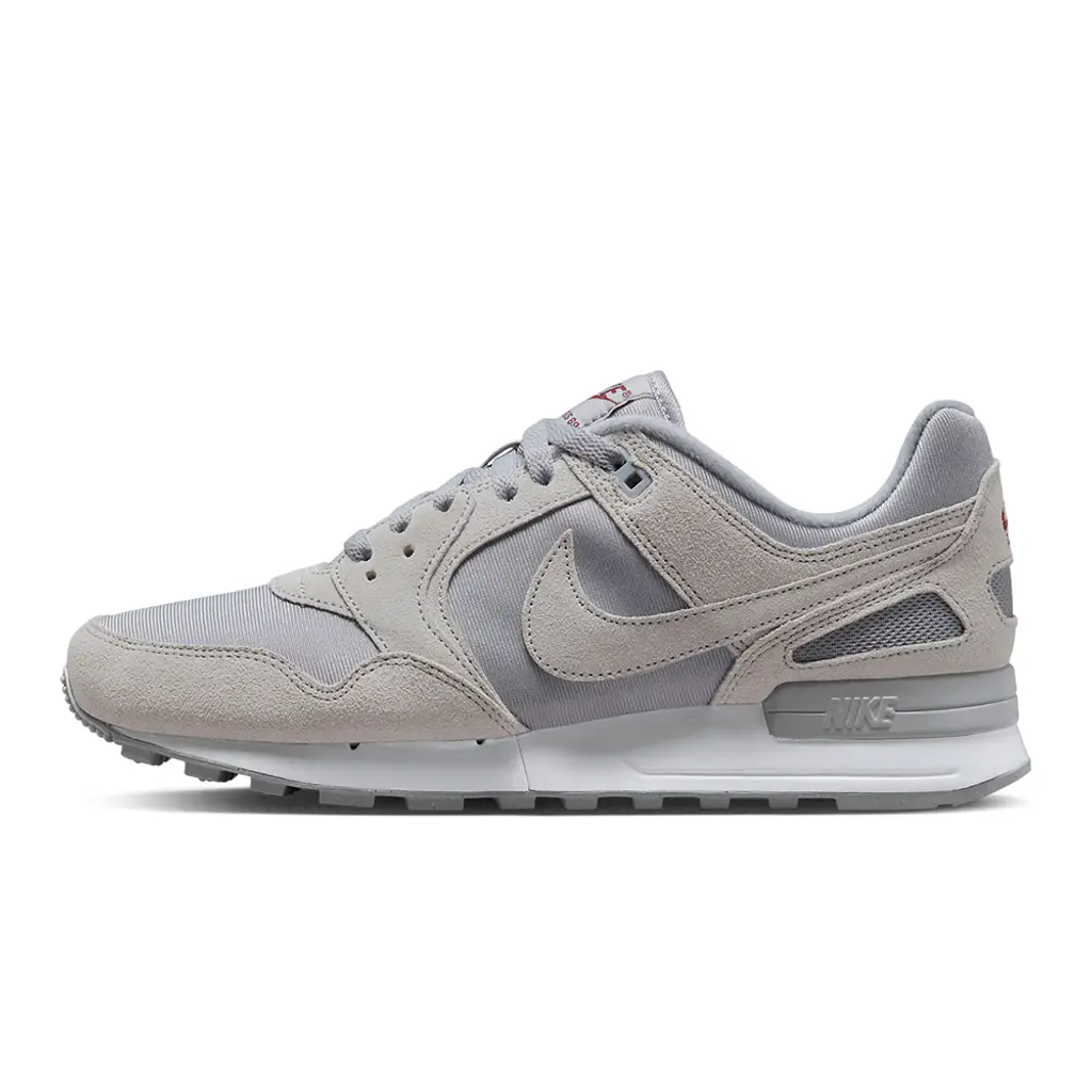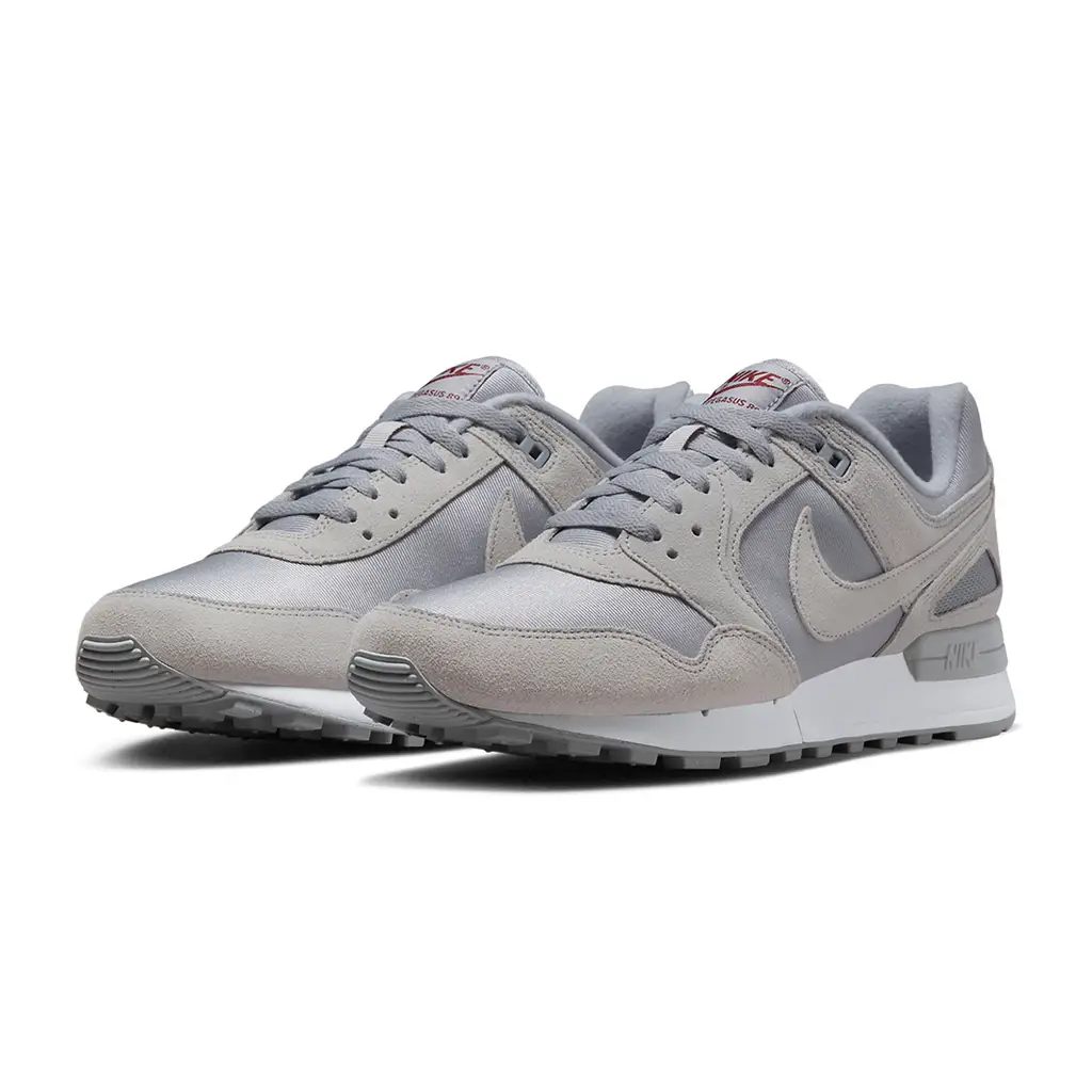 Boasting the OG shape from the shoe’s original release in the late 80s, Nike has done its best to stay true to the tooling of the silhouette. A nylon toe box maintains breathability and is the choice of material for the main construction of the upper. Providing contrast are the overlaying panels which are cut from a light grey suede, sticking to the monochromatic colourway. One of the shoe’s most unique features is the mesh vents which occupy the heel counter, which during its original 80s release, was a huge step forward in terms of air-flow technology. The only other form of colour that’s visible on the upper is used on the tongue and heel branding, the dark burgundy doing well to stay on track with the subtle theme of the shoe.