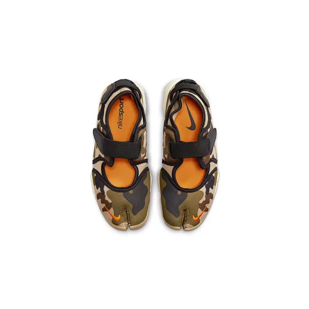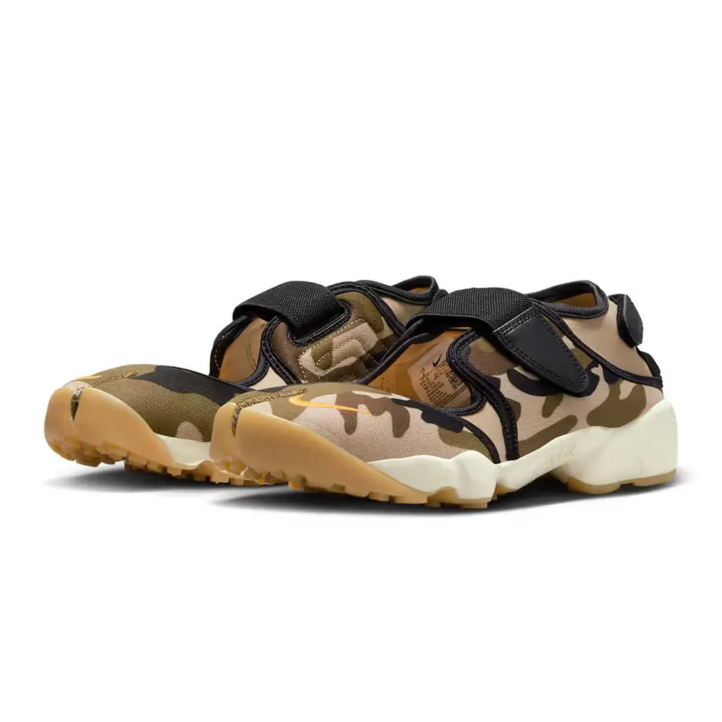Of course, the split-toe remains present, accompanied by an orange mini-Swoosh embroidered onto the lateral side of the toe. A large midfoot opening is supported by the two straps, one that secures over the top of your foot and the other providing lockdown around the heel. The camouflage upper is balanced by a beige and gum sole below that makes for a more wearable shoe, allowing you to play into the shoe’s tonal palette. An aggressive tread and hoofed heel ensure a stable ride, sticking to the original design attributes that made the silhouette a favourite among runners in Europe.