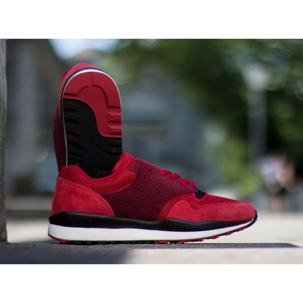 This stylish pair is dressed up in various shades of deep red with black detailing throughout. The upper features a mesh base with suede overlays and a textured print to the sidewall panels. A black and white split on the midsole contrasts nicely with the shoes making this a complete package. This pair is sure to be a big favourite amongst sneakerheads and there not going to stick around for long so make sure you grab a pair while you can.